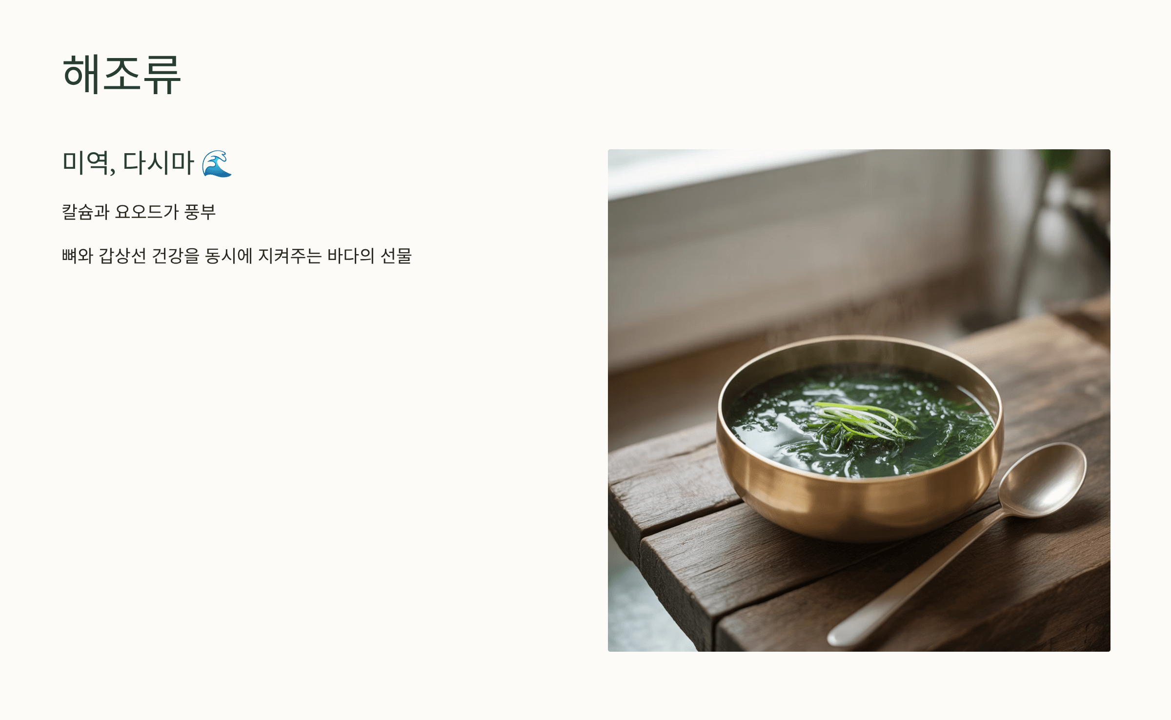 칼슘과 요오드가 풍부해 뼈와 갑상선 건강을 동시에 지켜줍니다. 🌊