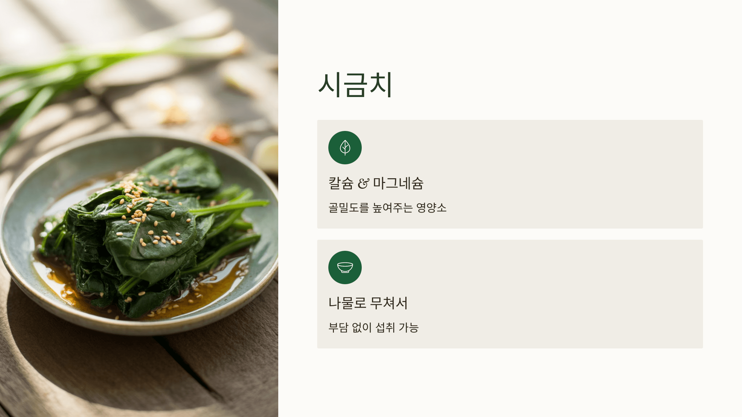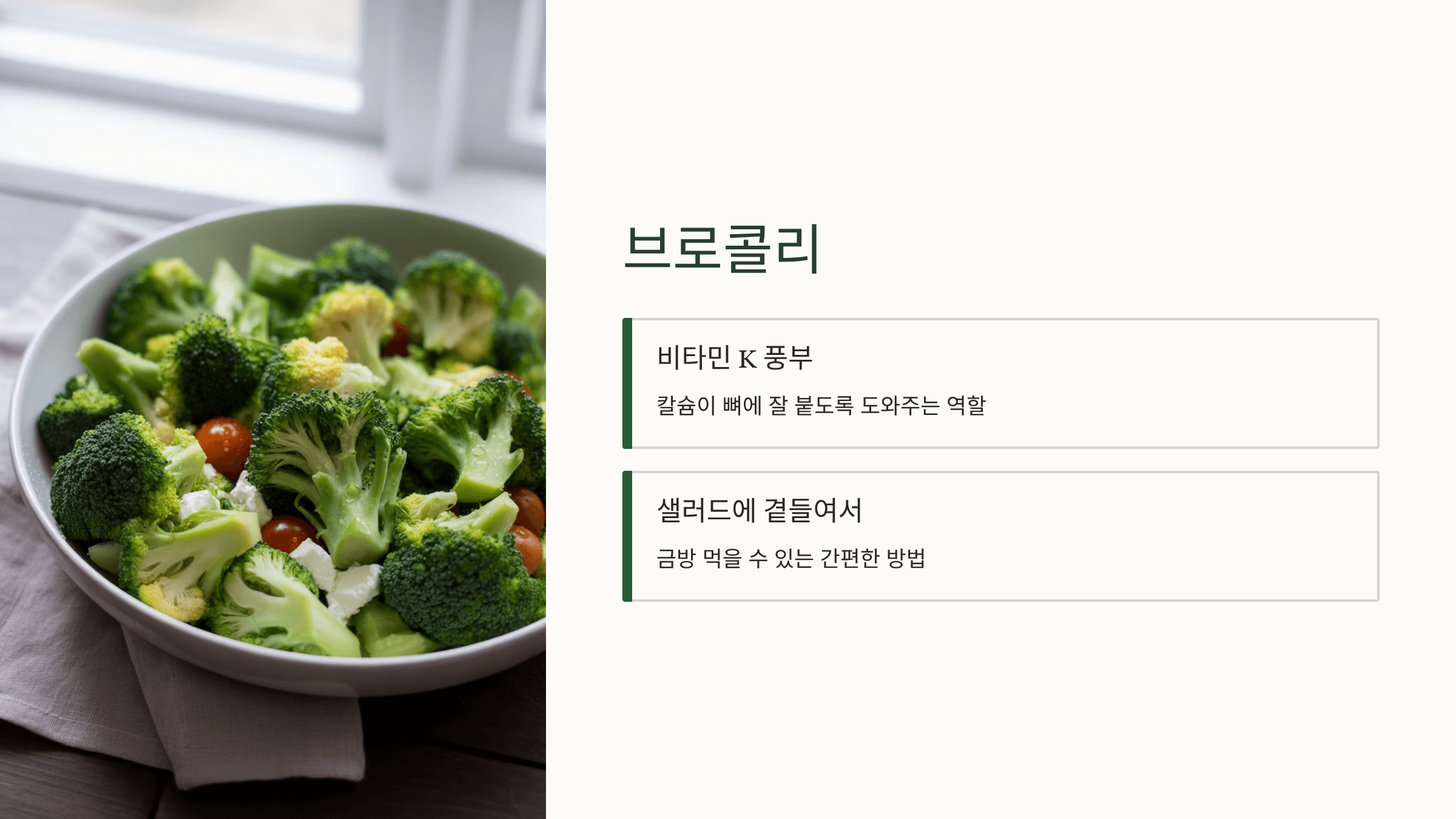 비타민 K가 풍부해 칼슘이 뼈에 잘 붙도록 도와줍니다.