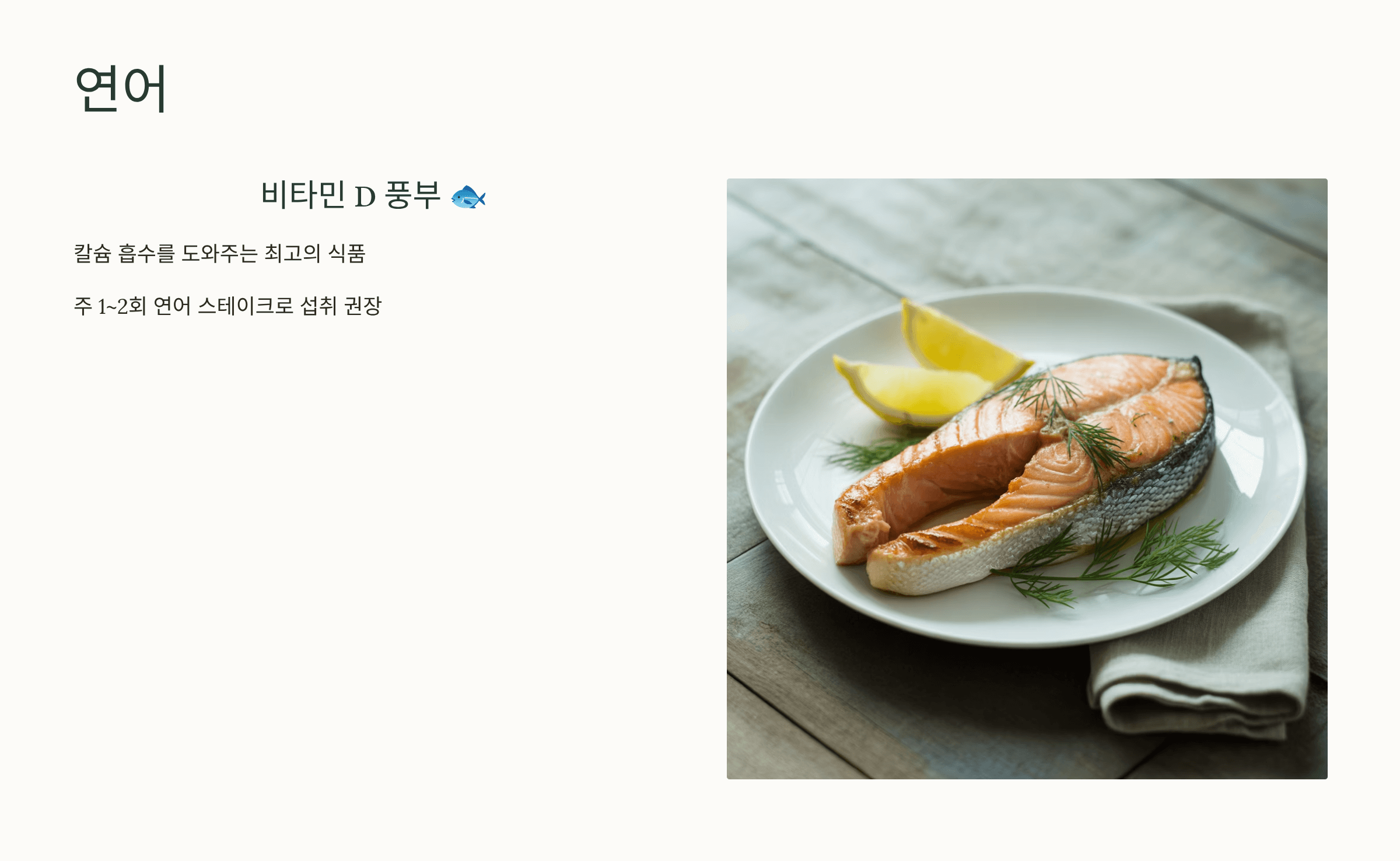 비타민 D가 풍부해 칼슘 흡수를 도와주는 최고의 식품입니다. 🐟