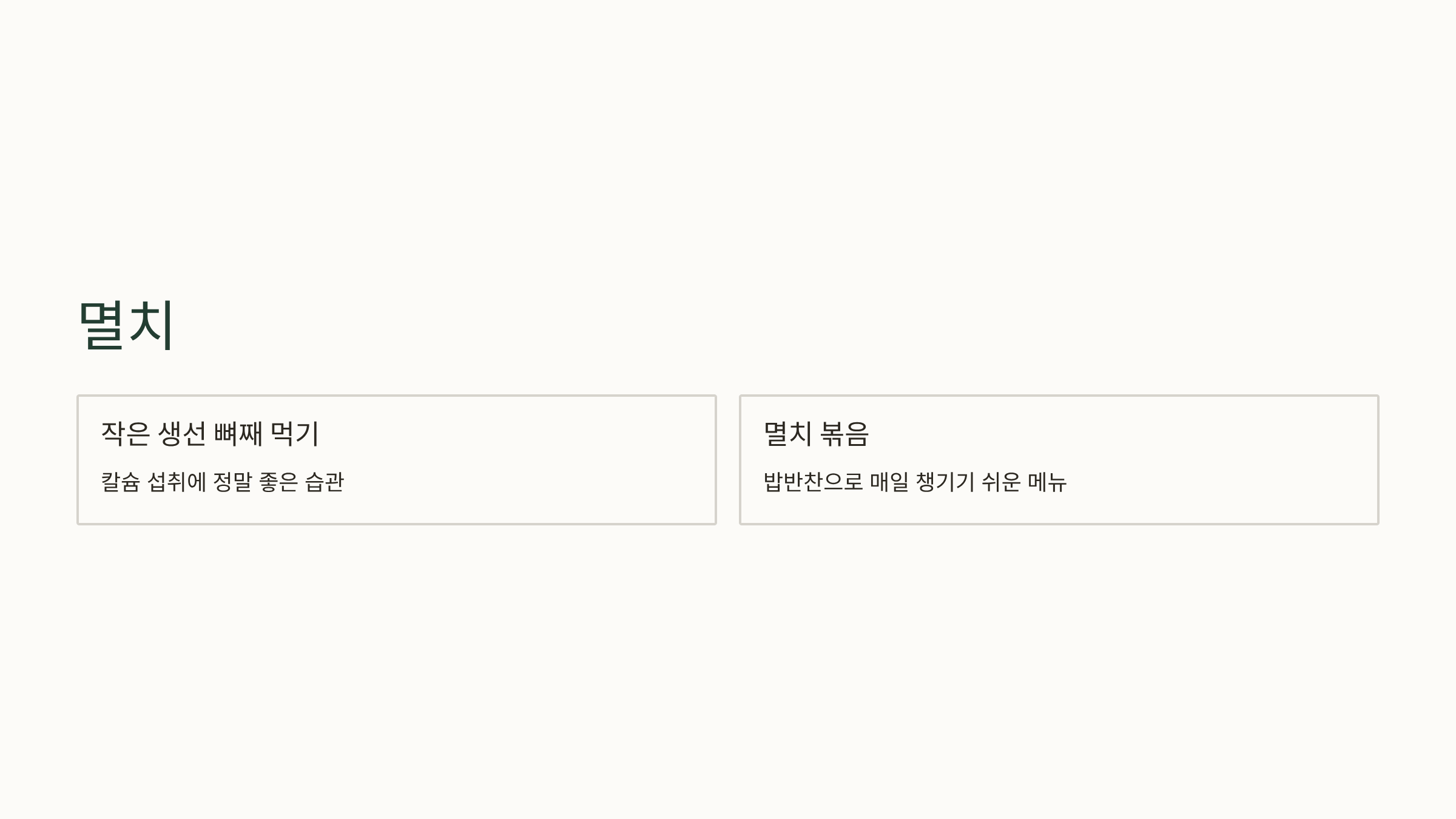 작은 생선 뼈째 먹는 습관이 칼슘 섭취에 정말 좋아요.