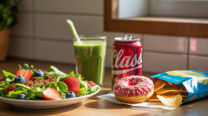 - 저녁 간식 습관 — 특히 라면, 과자, 술 등 단순당·지방이 많은 음식은 다음 날 혈당에 큰 영향을 줍니다.