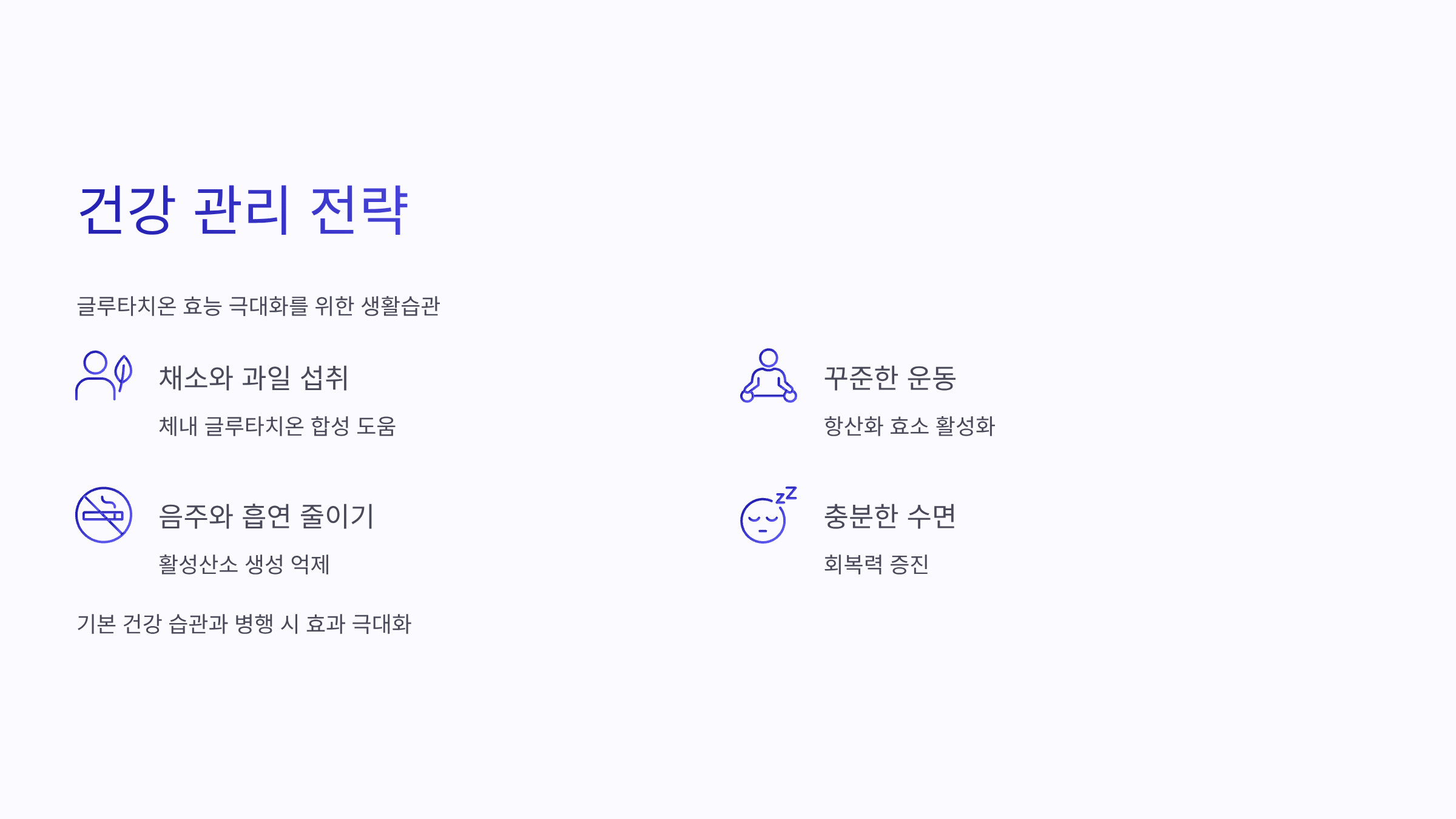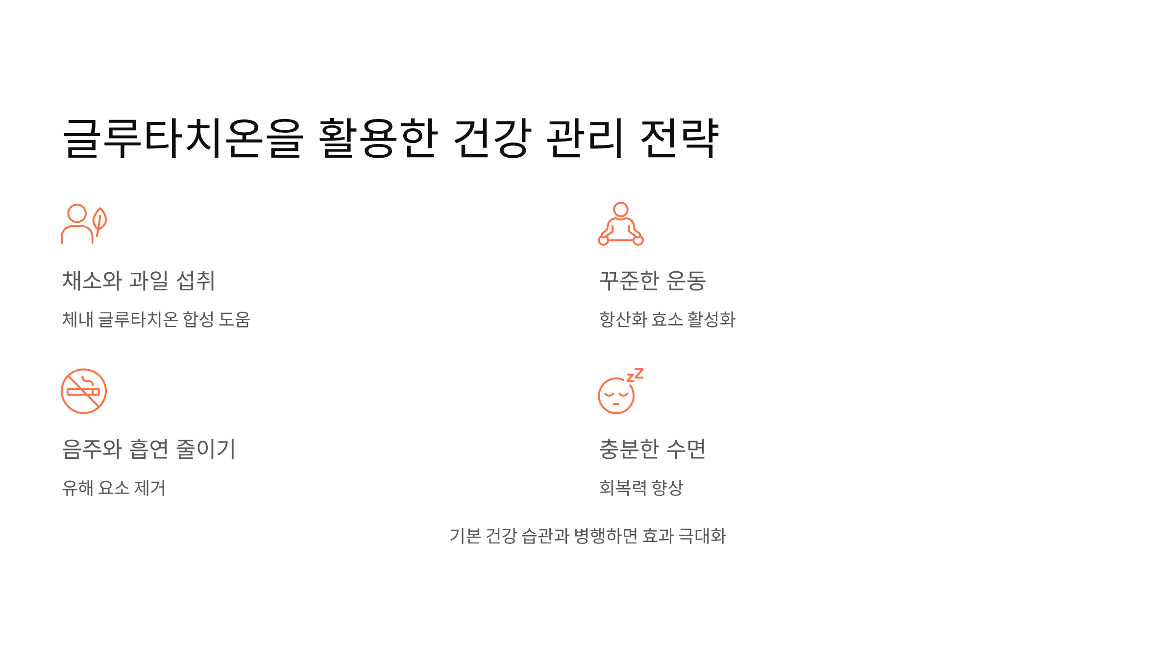 글루타치온을 제대로 활용하려면 단순히 보충제에만 의존하기보다, 생활습관과 함께 관리하는 것이 중요합니다.