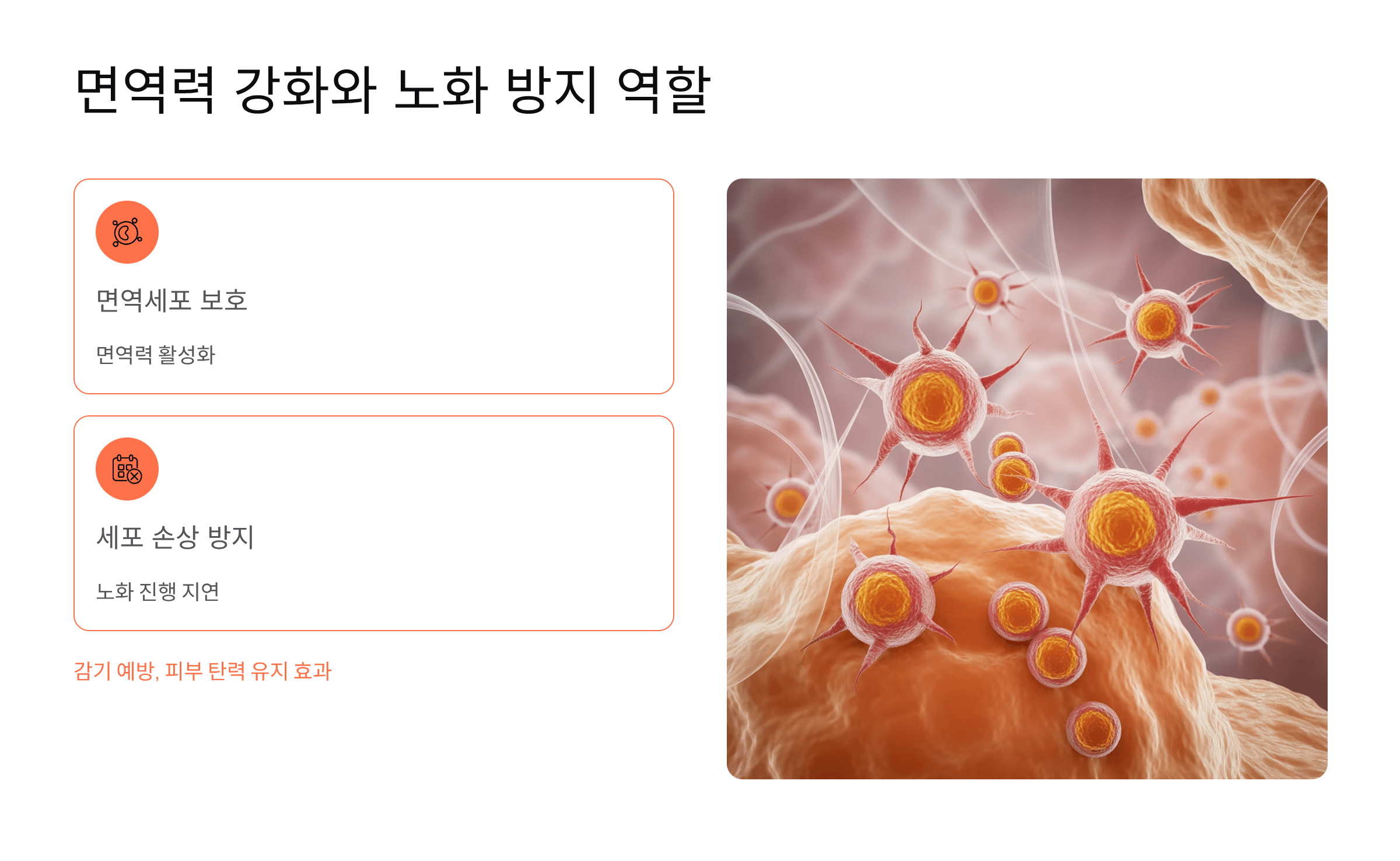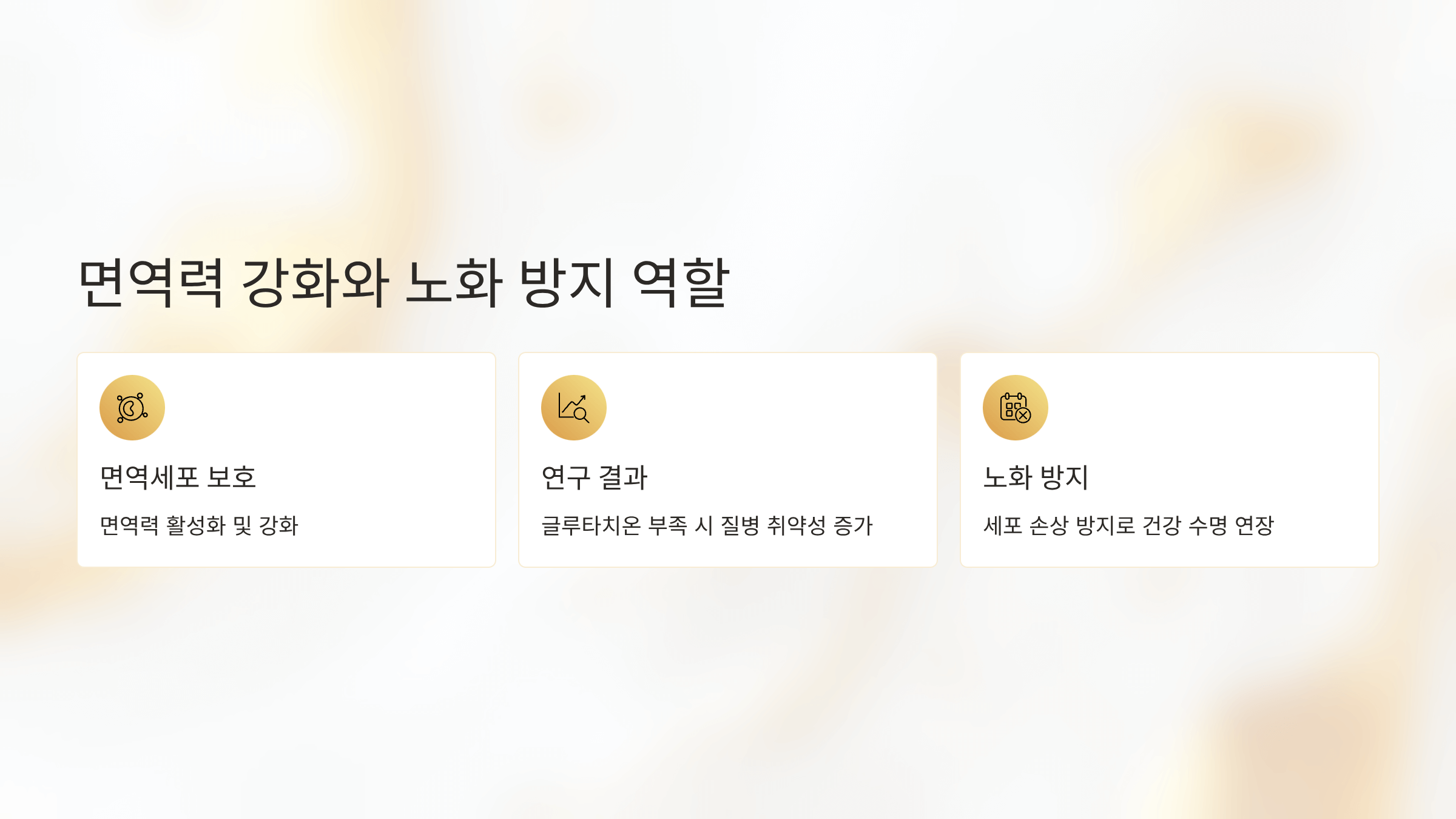 글루타치온은 면역세포를 보호하고 활성화시켜 면역력을 높여줍니다. 실제 연구에서도 글루타치온 수치가 낮으면 각종 질병에 취약하다는 결과가 나와 있습니다. 또한 세포 손상을 막아 노화를 늦추는 데에도 큰 역할을 합니다. 저도 예전보다 감기에 잘 안 걸리고, 피부 탄력이 유지되는 걸 보면서 글루타치온 효과를 실감했습니다. 꾸준한 항산화 관리가 곧 건강 수명을 연장하는 길인 것 같아요.