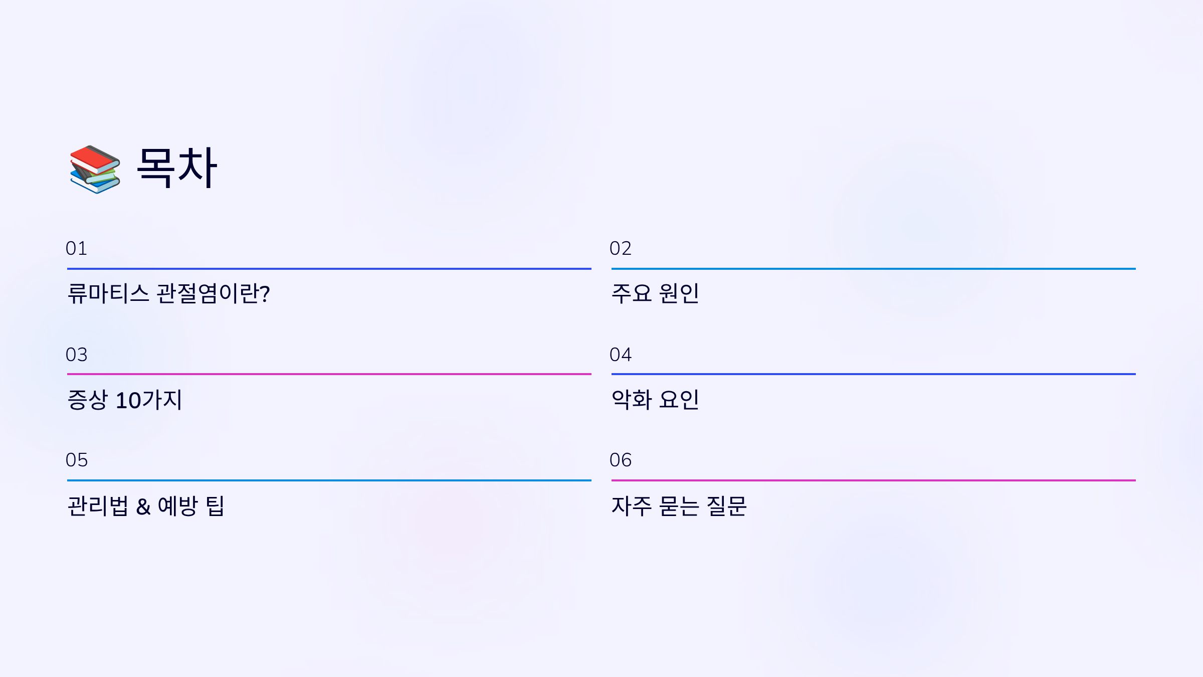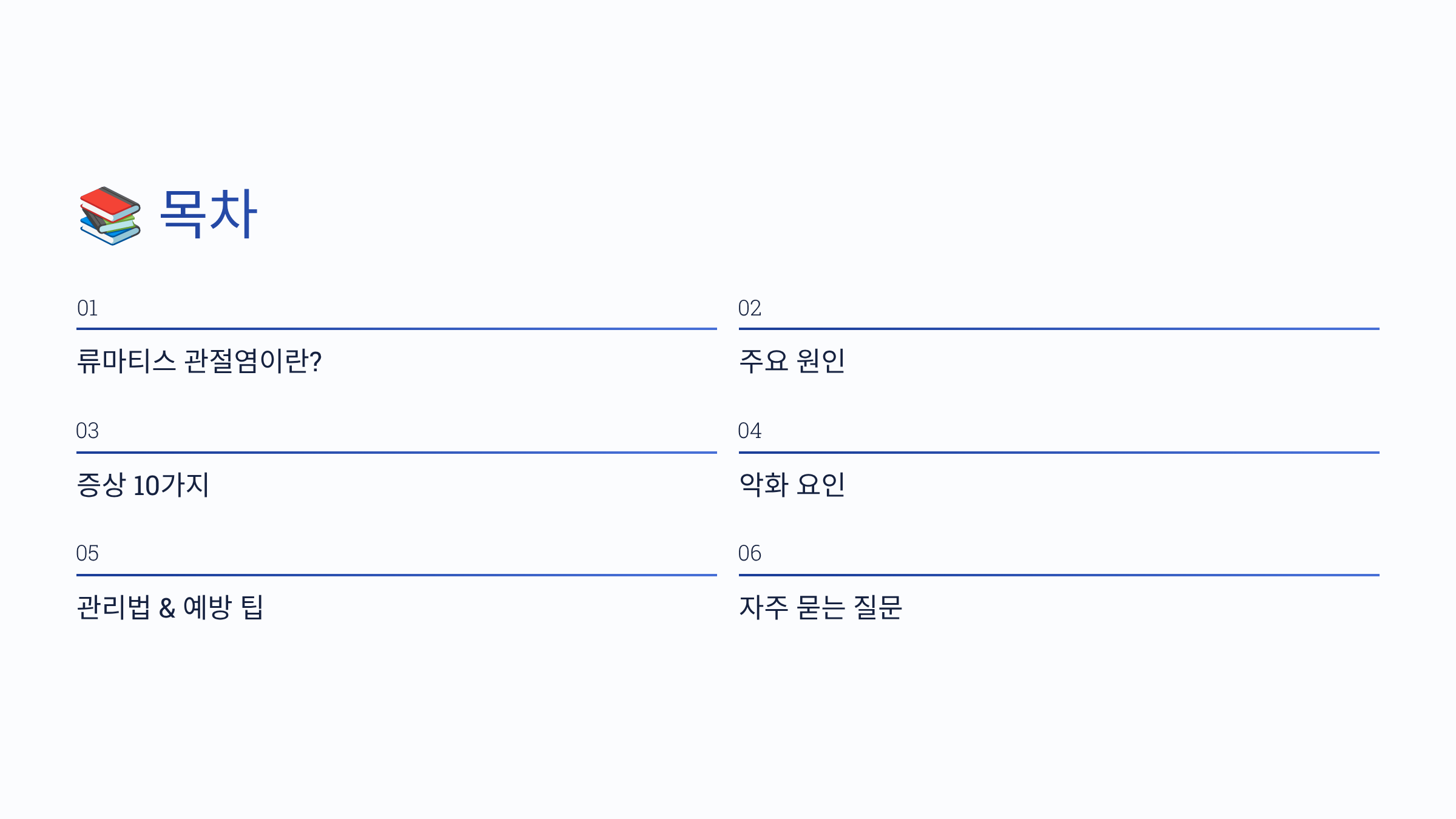 오늘은 류마티스 관절염의 정의·원인·증상·관리법·생활 습관 개선 팁, 그리고 자주 묻는 질문까지 알차게 정리해드릴게요!