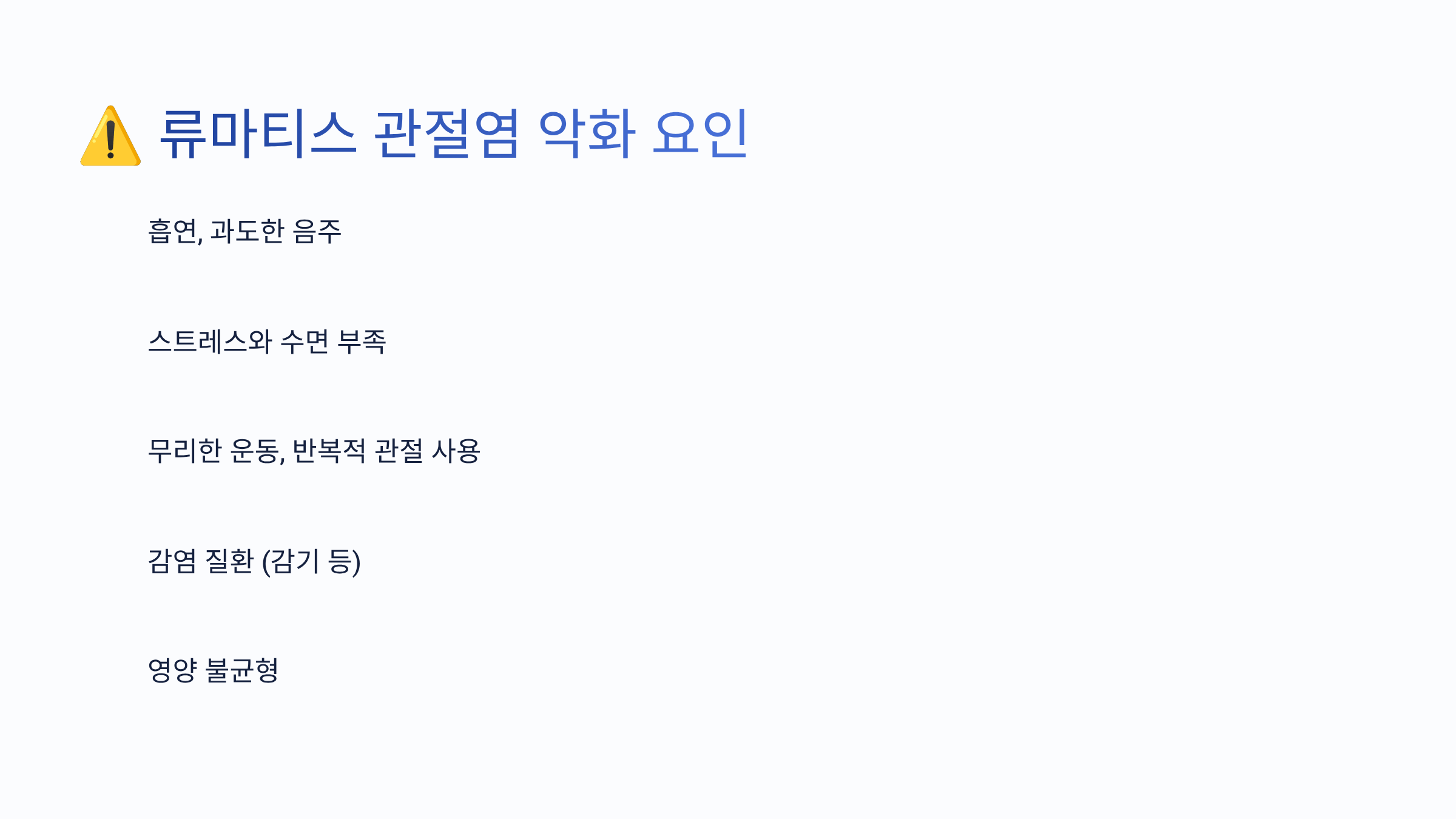 - 정기 검진: 관절 상태, 염증 수치 체크 필수