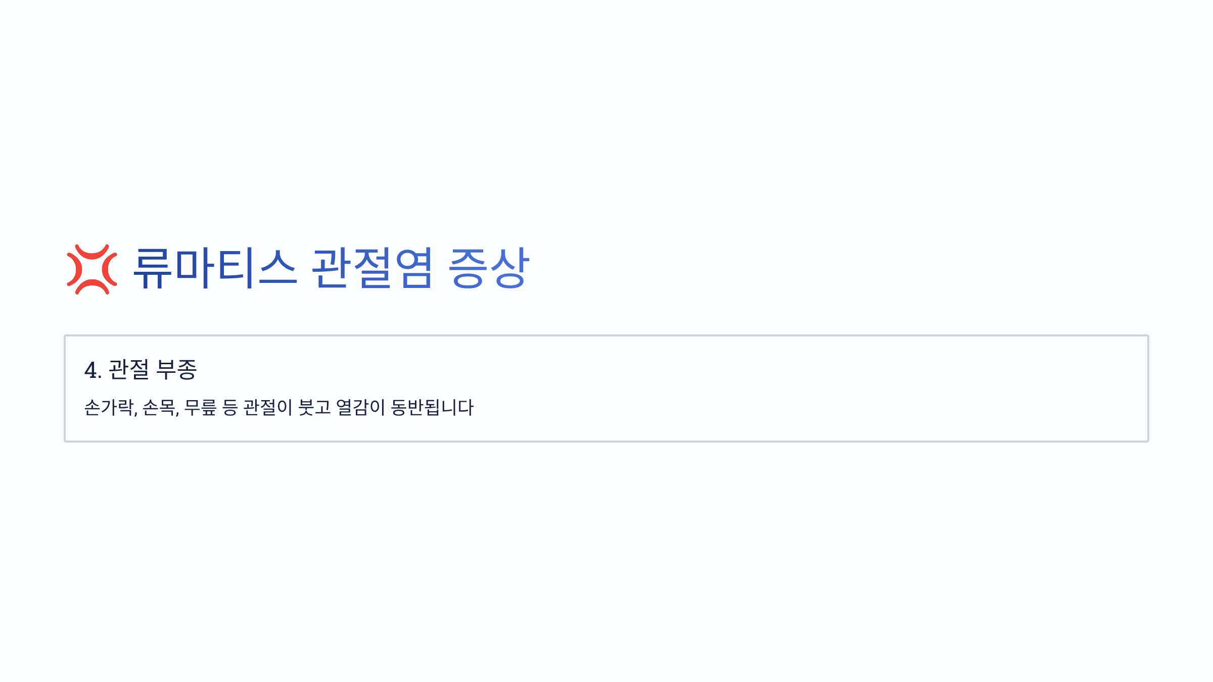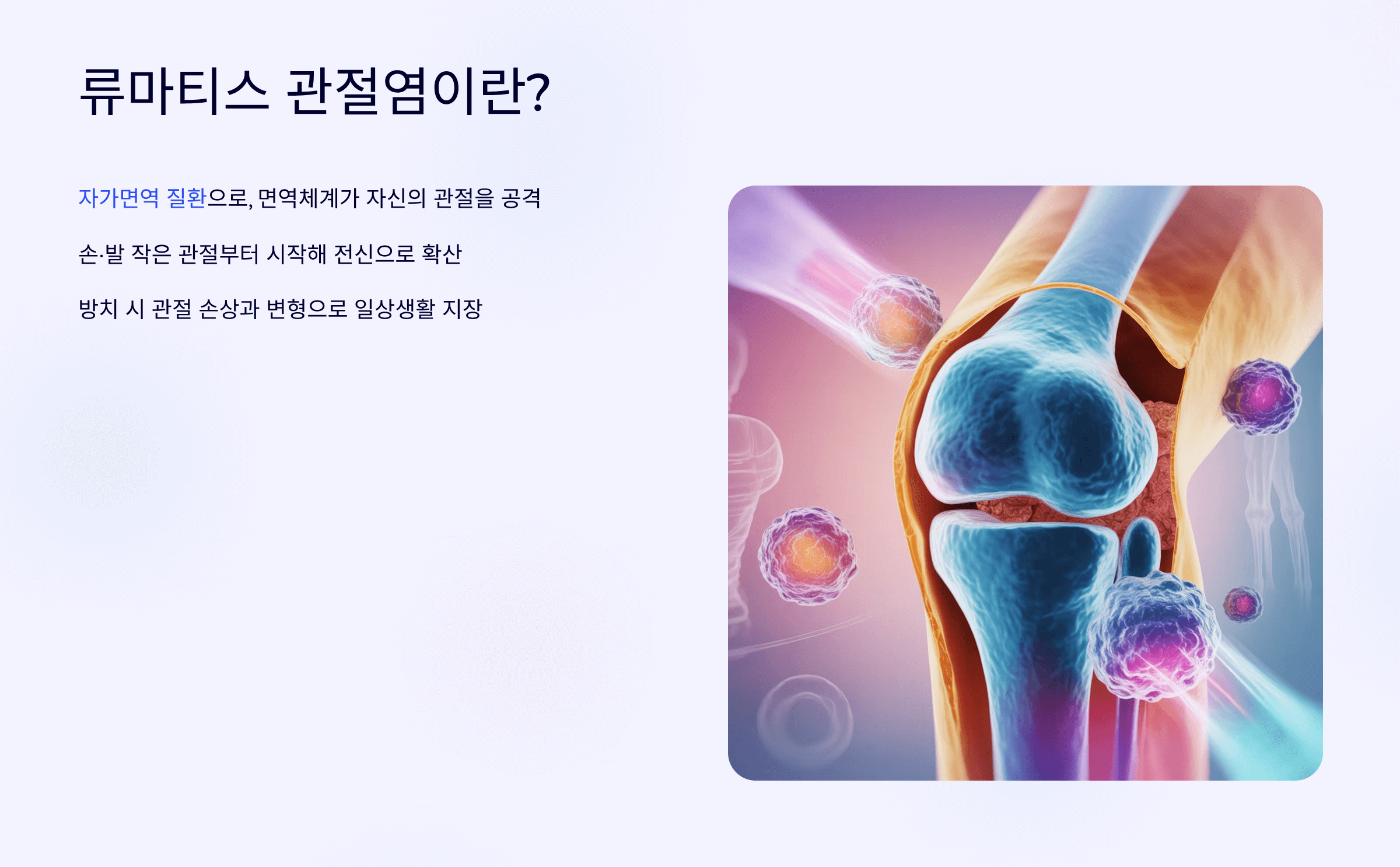 류마티스 관절염은 단순한 관절 통증을 넘어서 전신 건강에 영향을 미치는 질환이에요.