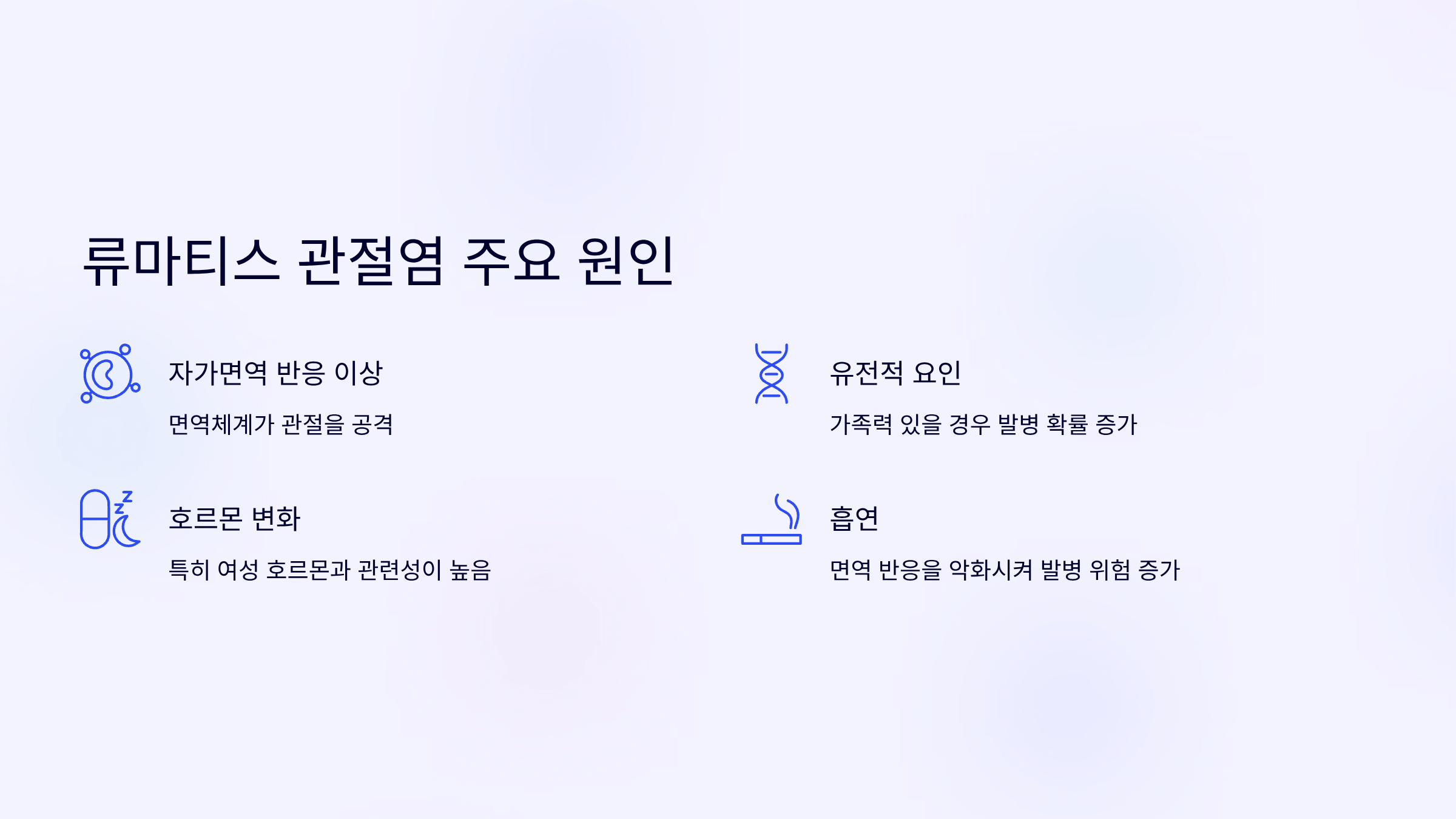 - 자가면역 반응 이상: 면역체계가 관절을 공격
