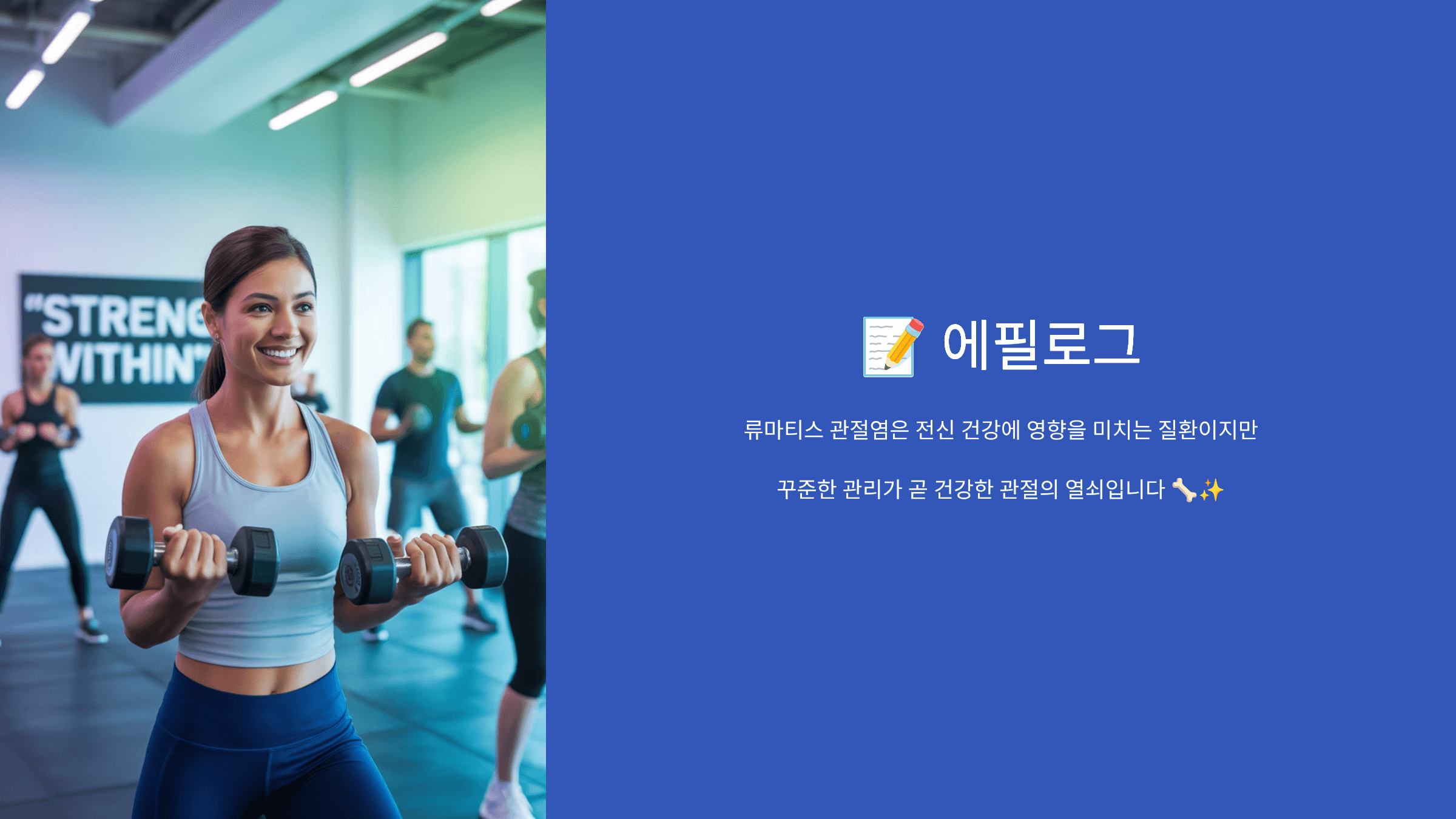 저도 류마티스 관절염 치료 과정에서 운동·식습관·약물 치료를 병행하니 통증이 줄고 활력이 회복되었어요.