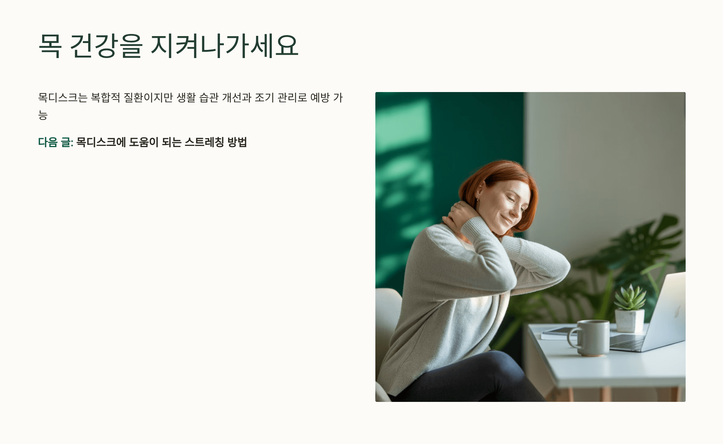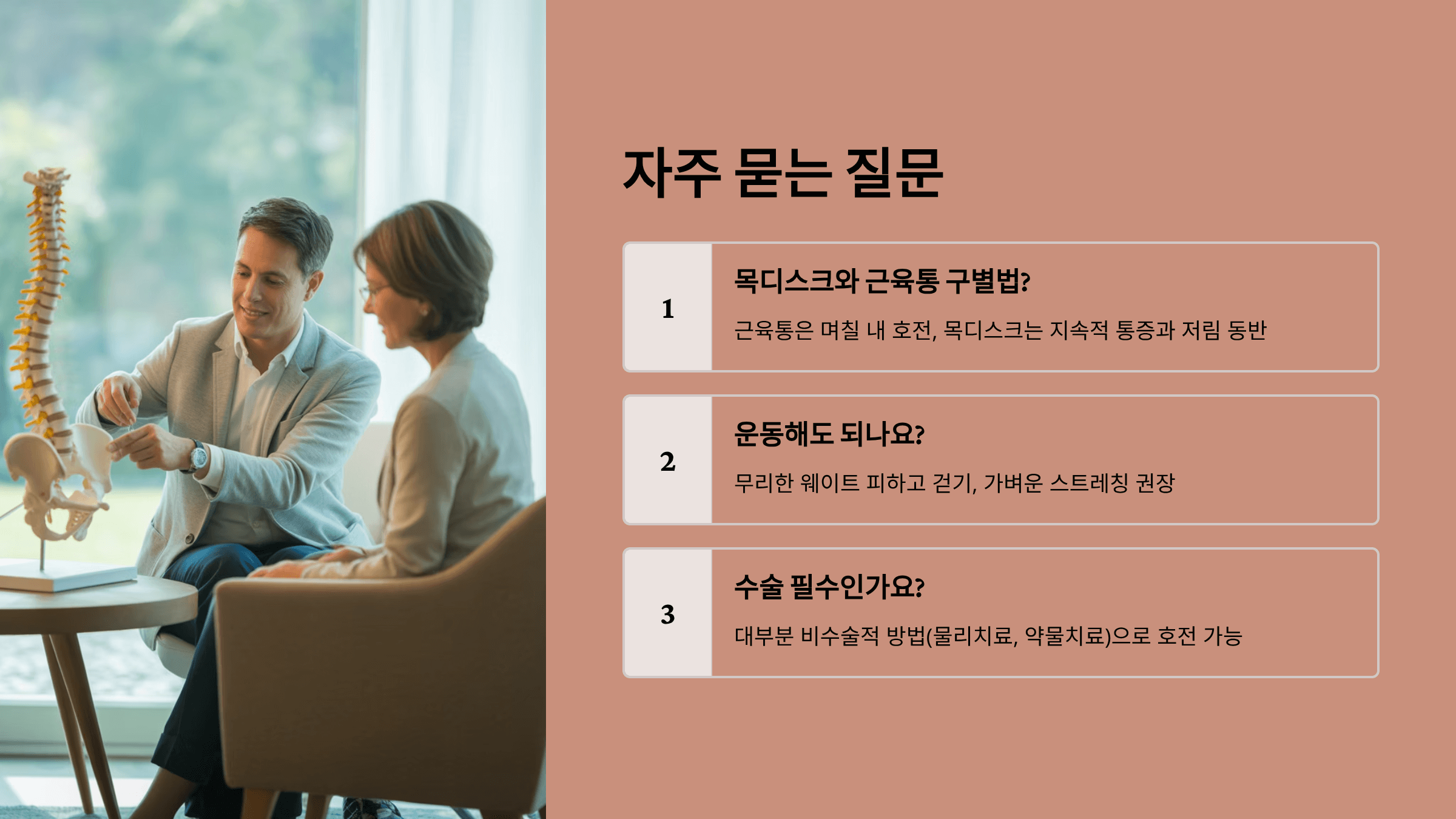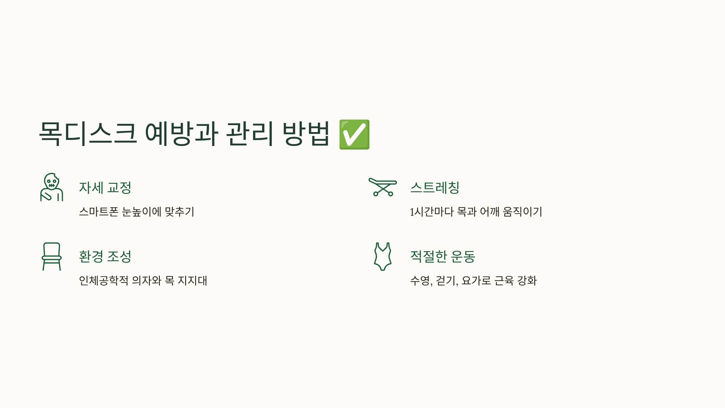 목디스크는 조기 발견과 생활 습관 관리가 핵심입니다. ✅