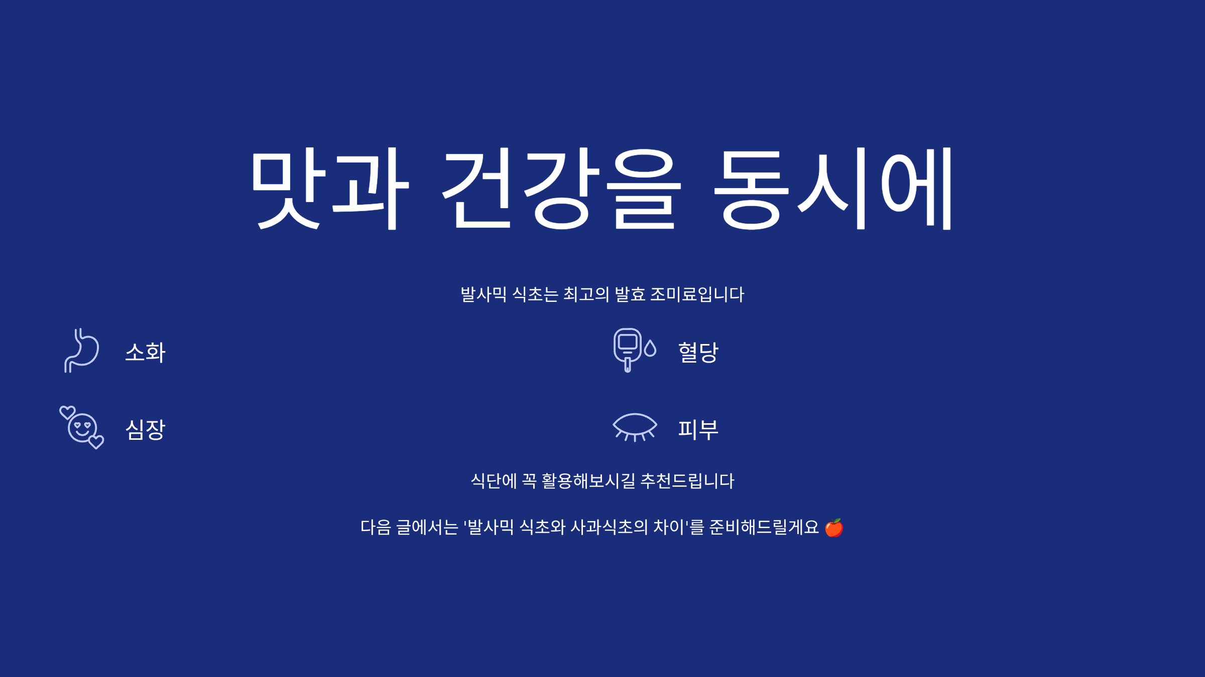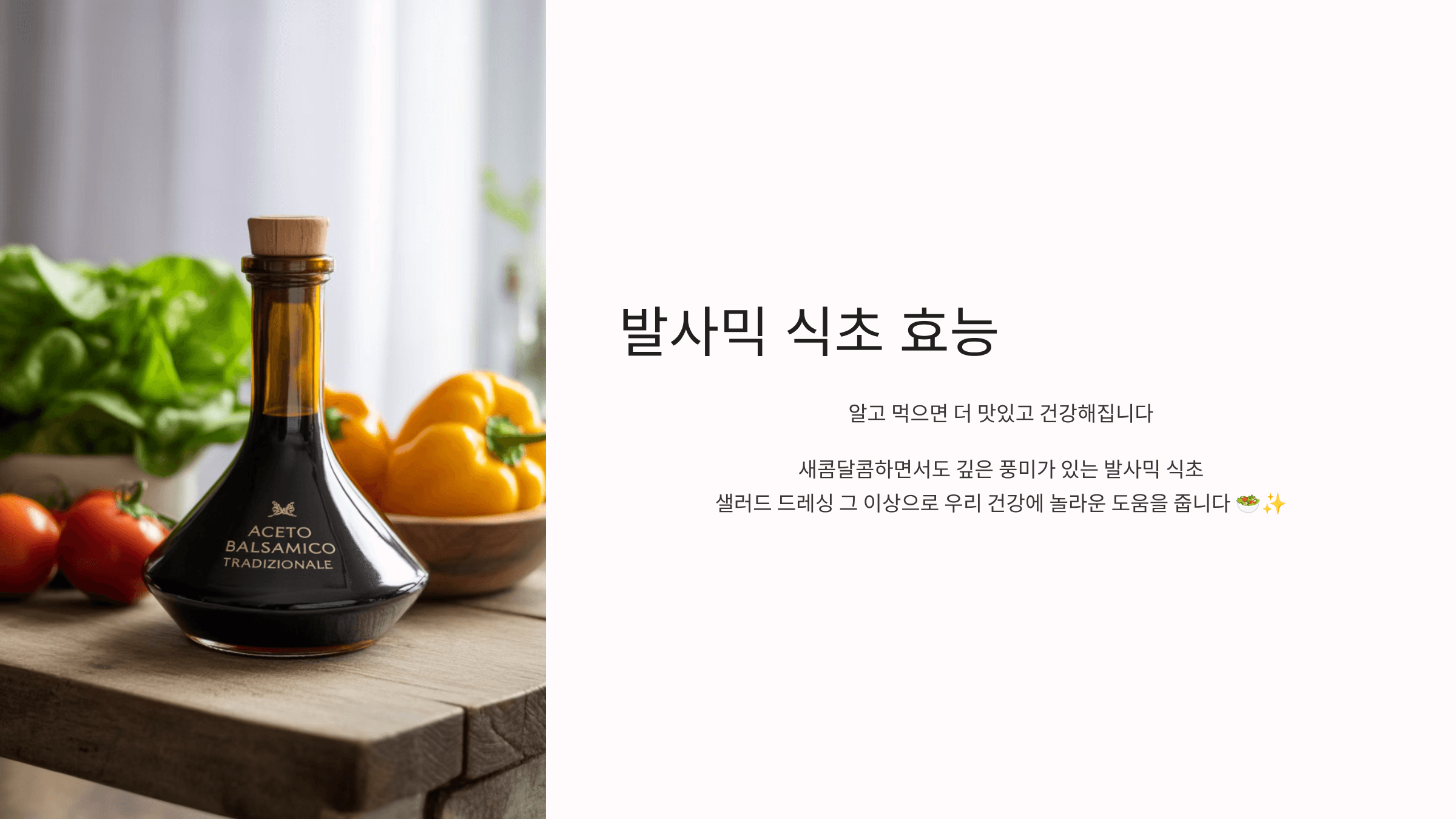 짧게 정리하면, 발사믹 식초는 맛과 건강을 동시에 잡을 수 있는 최고의 발효 조미료입니다. 소화, 혈당, 심장, 피부까지 두루 챙길 수 있는 만큼 식단에 꼭 활용해보시길 추천드립니다. 다음 글에서는 사과식초의 효능을 준비해드릴게요 🍎.