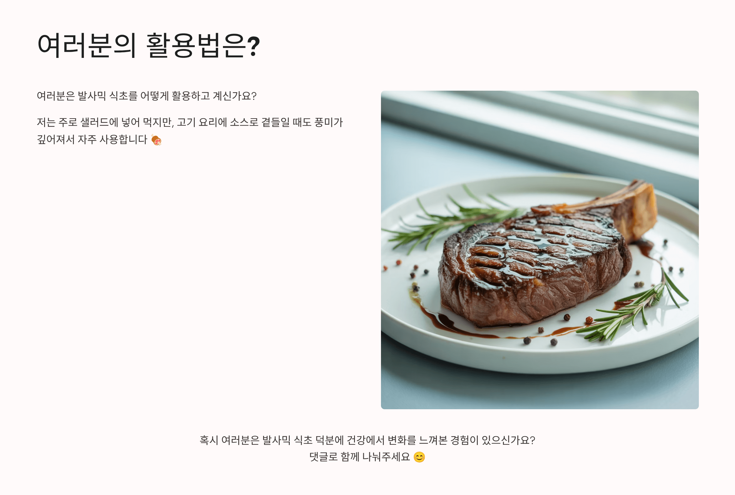 저는 여름철 피부가 칙칙해질 때 발사믹 식초를 곁들인 식단을 자주 챙겨 먹는데, 피부가 한결 생기 있어지고 건강해진 걸 느낄 수 있었어요 🌸.