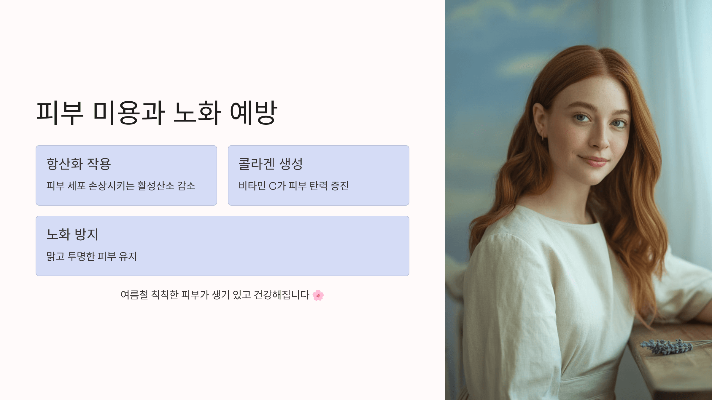 - 비타민 A, C: 면역력 강화와 세포 보호