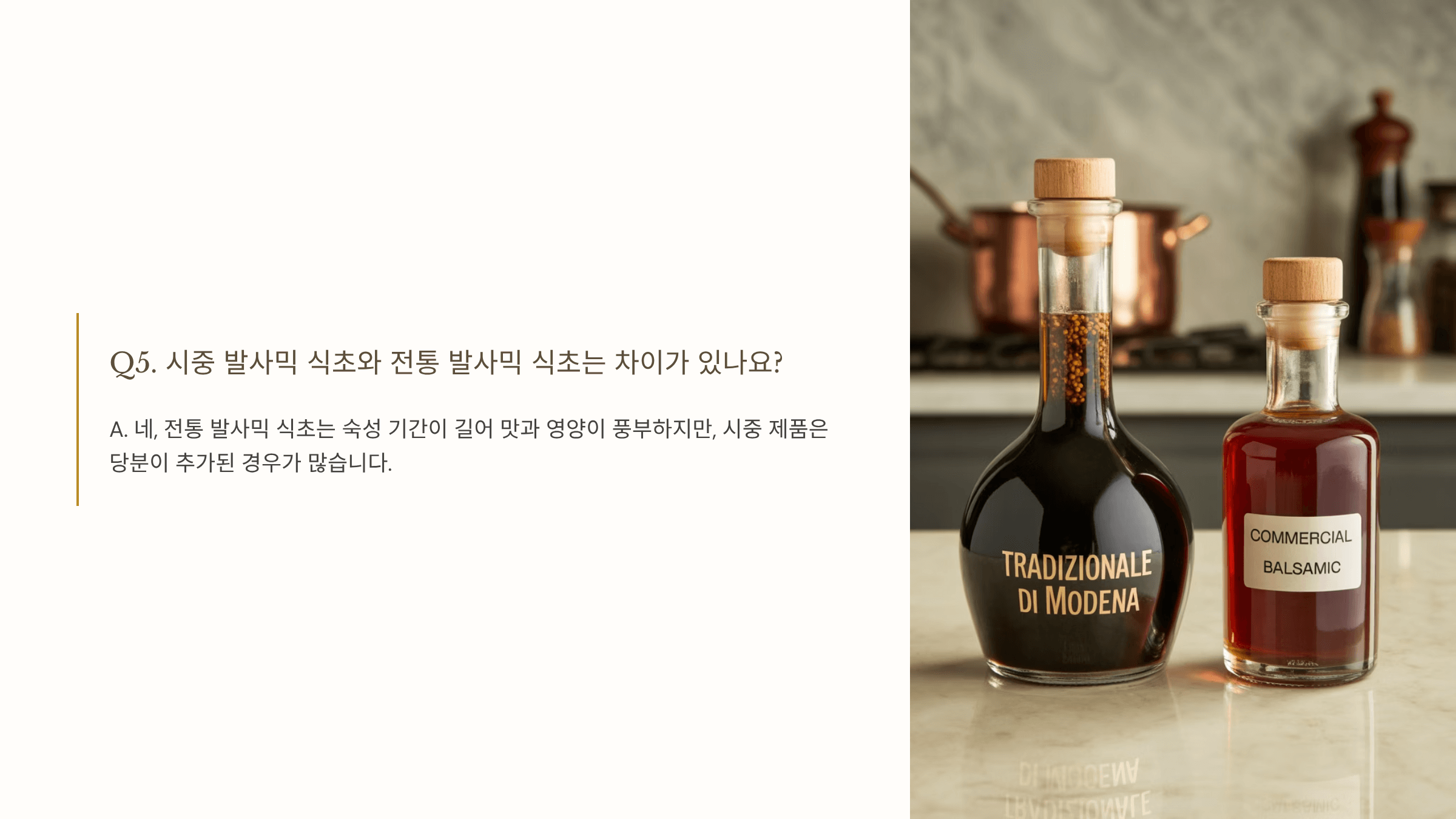 Q5. 시중 발사믹 식초와 전통 발사믹 식초는 차이가 있나요?