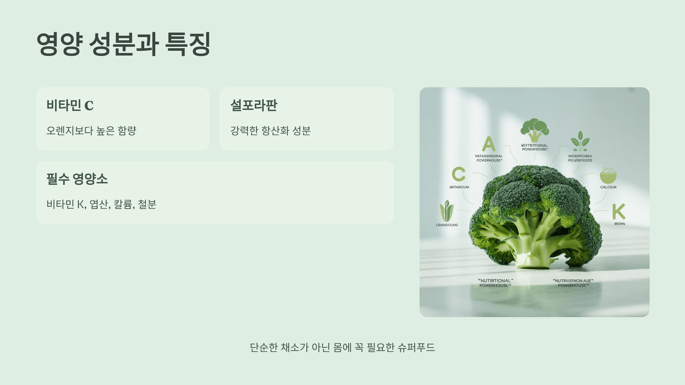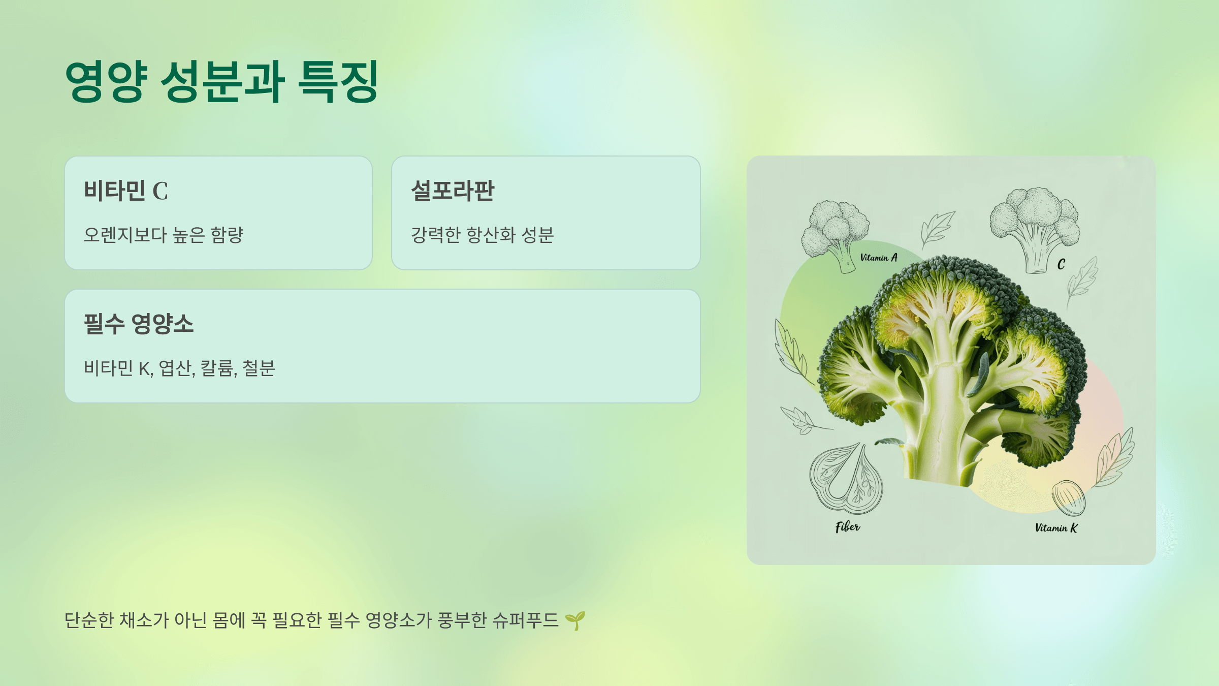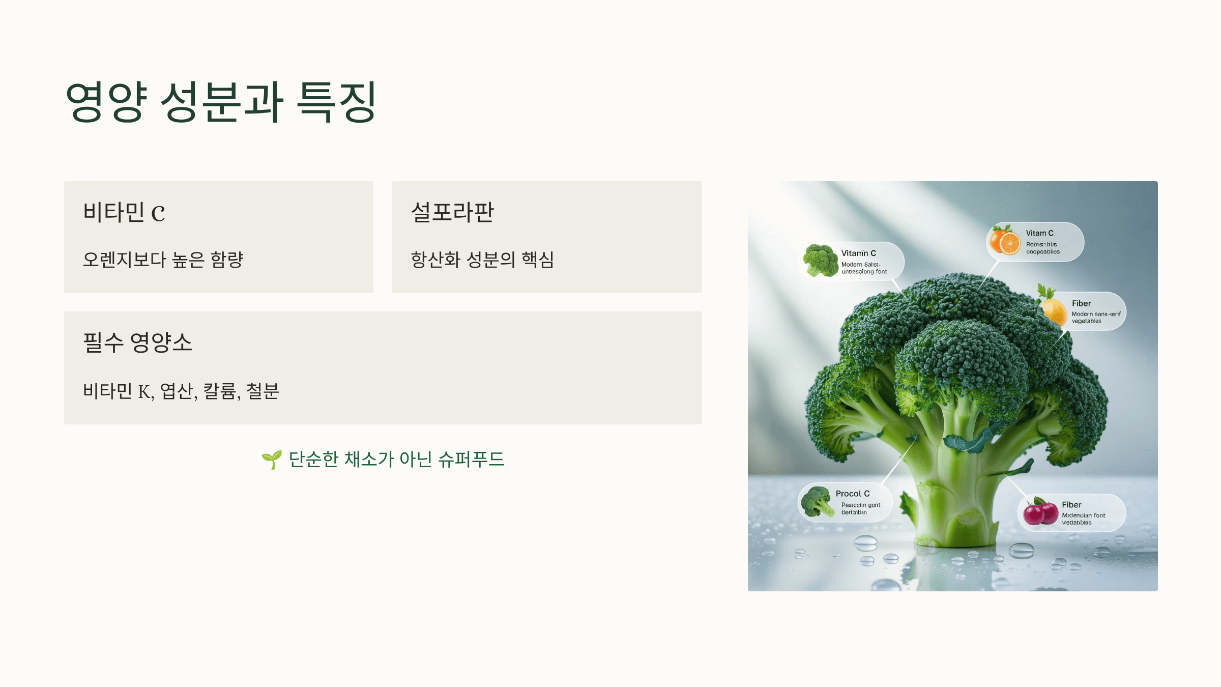 또한 브로콜리에는 설포라판(sulforaphane)이라는 항산화 성분이 들어 있는데, 이 성분은 체내에서 발암 물질을 해독하고 염증을 줄이는 데 도움을 줍니다. 저도 평소 브로콜리를 잘 챙겨 먹으면서 잔병치레가 줄어든 걸 느꼈습니다. 건강을 지키려면 매일 먹는 음식에서부터 신경 쓰는 게 가장 중요한 것 같아요.