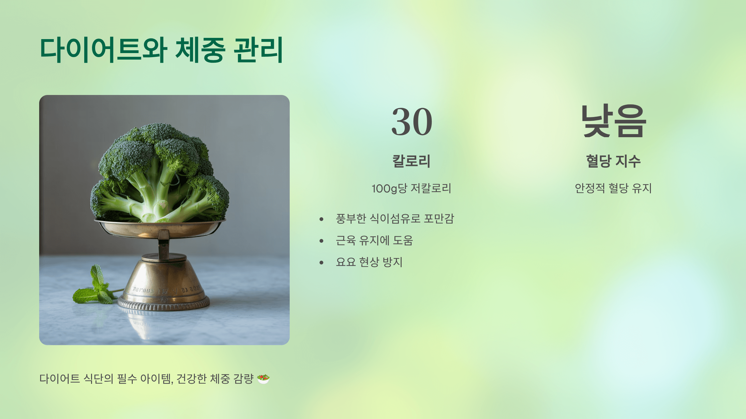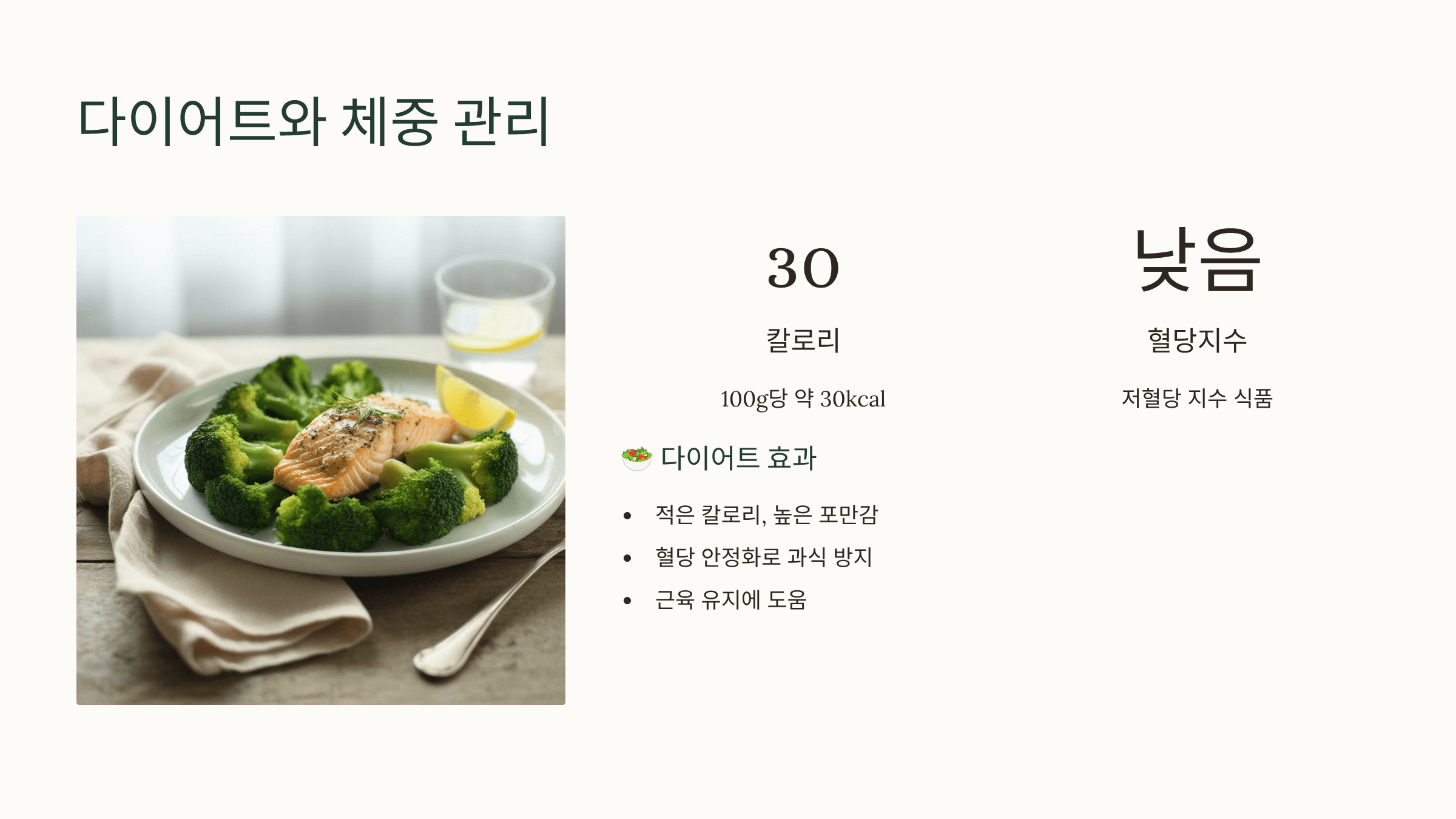 저는 체중 감량을 위해 저녁에 밥 대신 브로콜리를 곁들이곤 했는데, 배가 든든하면서도 체중이 안정적으로 줄었어요. 단백질과 곁들이면 근육 유지에도 도움이 되고, 요요 걱정도 줄어듭니다.