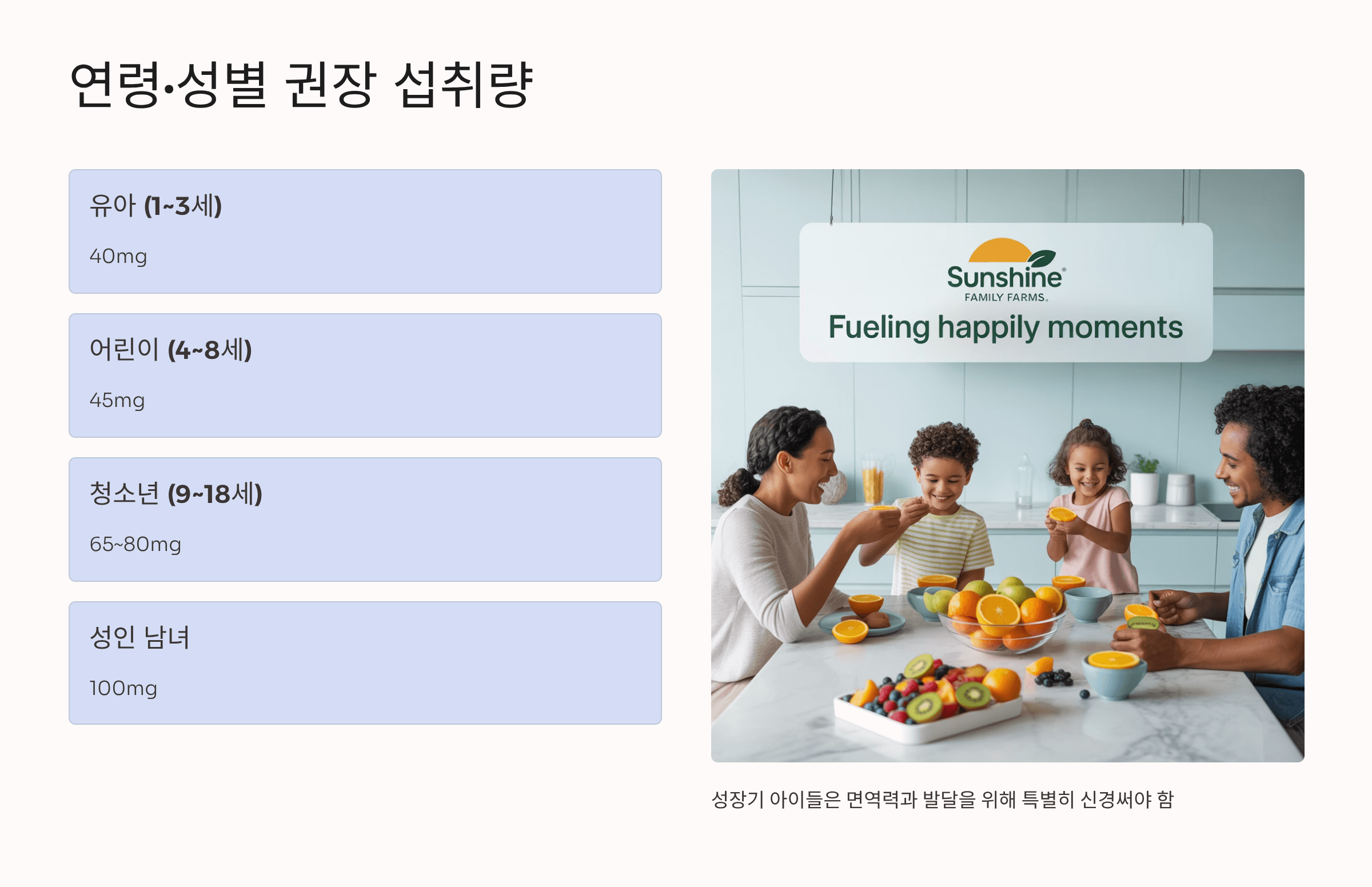 비타민C는 우리 몸에서 합성되지 않기 때문에 반드시 음식이나 보충제를 통해 섭취해야 하는 필수 영양소입니다. 예전에는 ‘감기 예방 비타민’ 정도로만 알았는데, 꾸준히 챙겨 먹다 보니 피부 탄력이 좋아지고 피로도 줄어드는 걸 직접 느꼈어요. 오늘은 비타민C 하루 권장량과 함께 연령·상황별 기준, 음식 섭취 팁까지 상세하게 알려드릴게요.