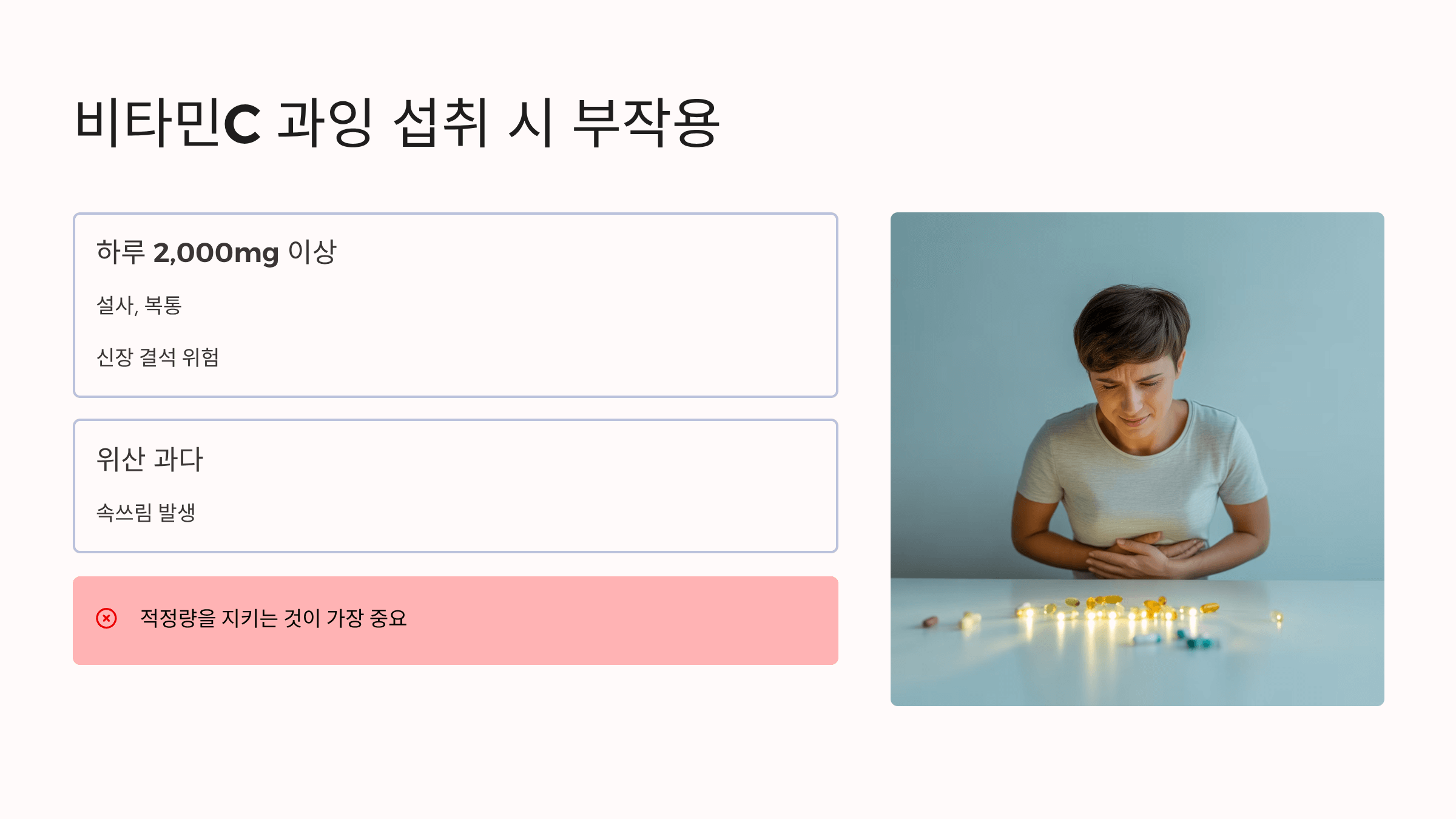 - 비타민C 과잉 섭취 시 부작용