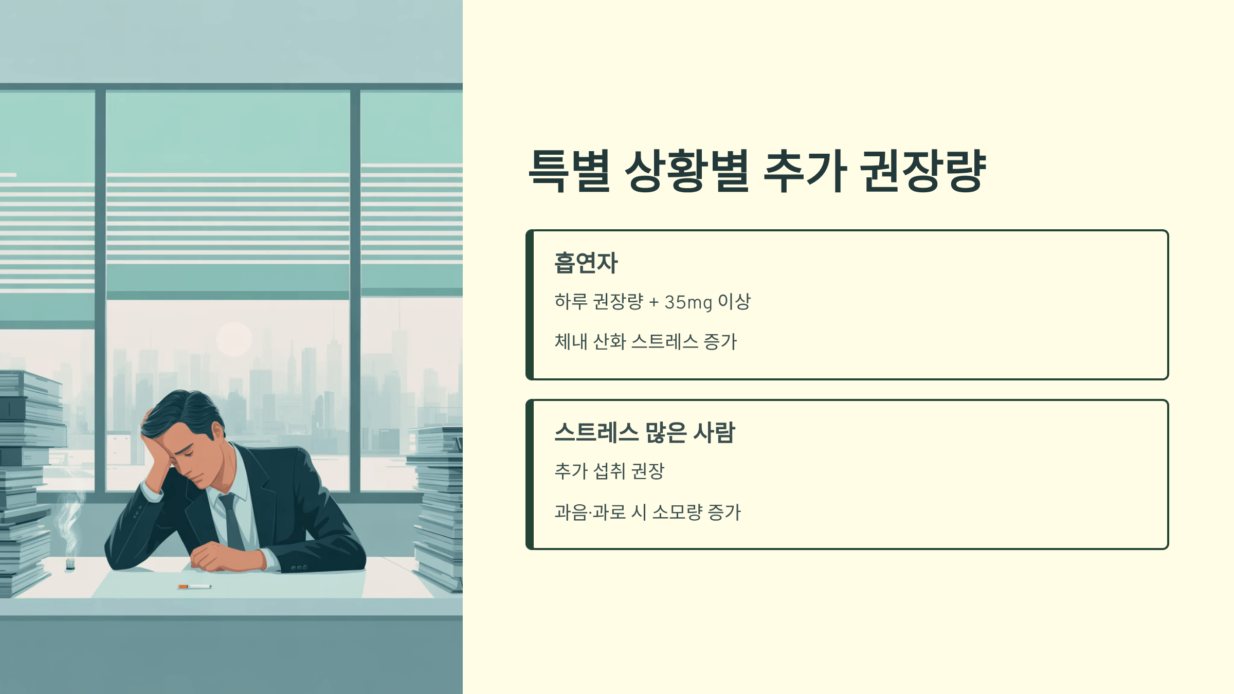 5. 흡연자와 스트레스 많은 사람의 추가 권장량 🚬💼