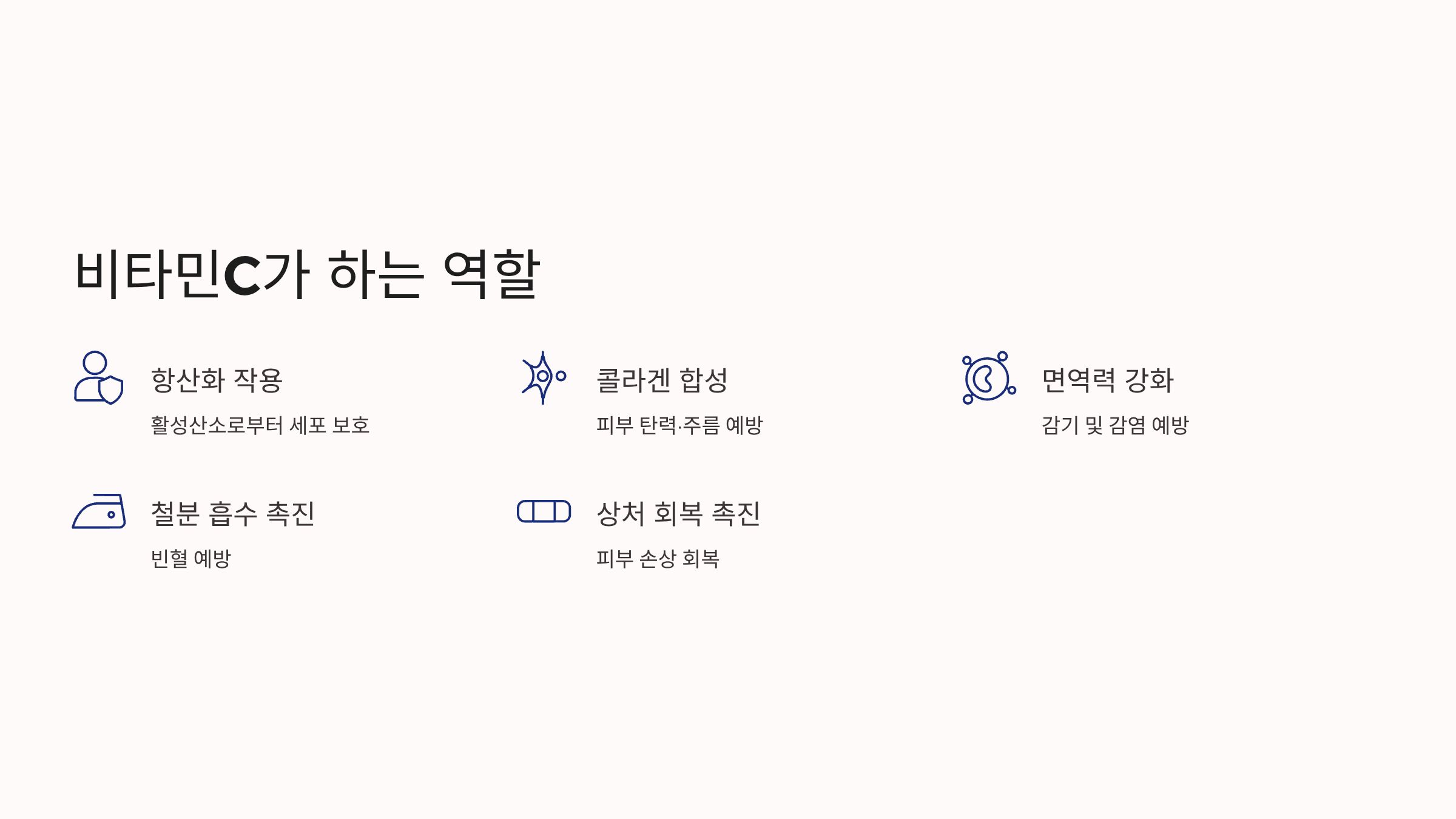 - 콜라겐 합성 → 피부 탄력·주름 예방