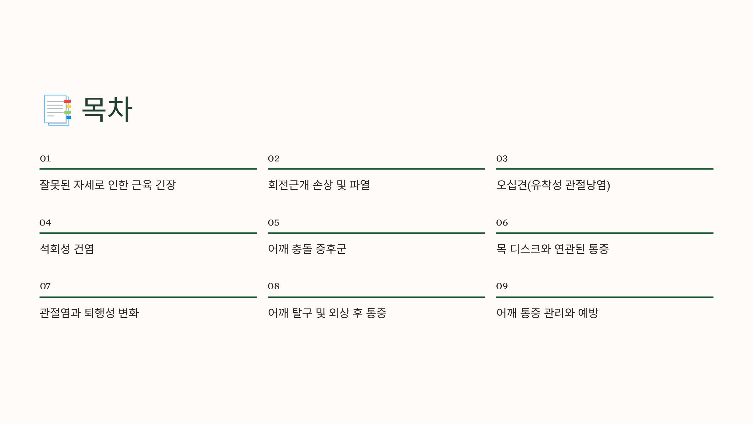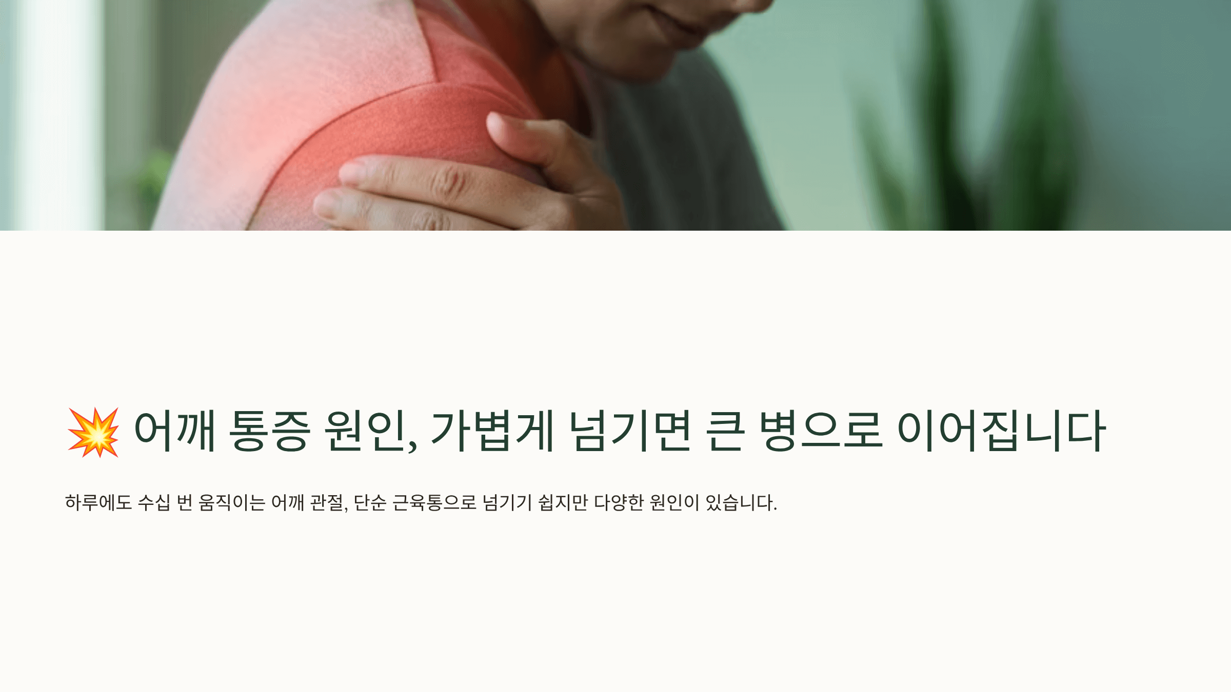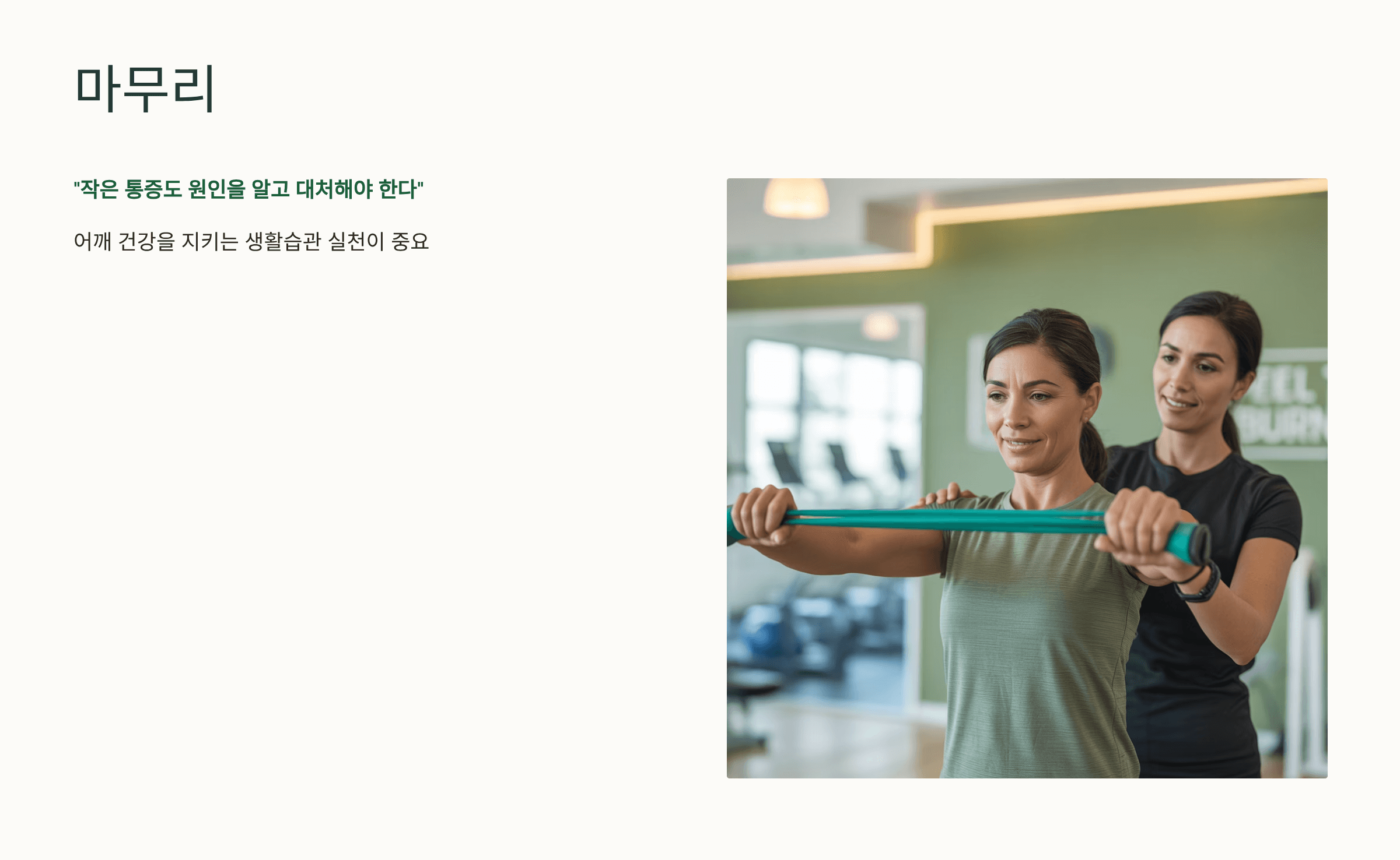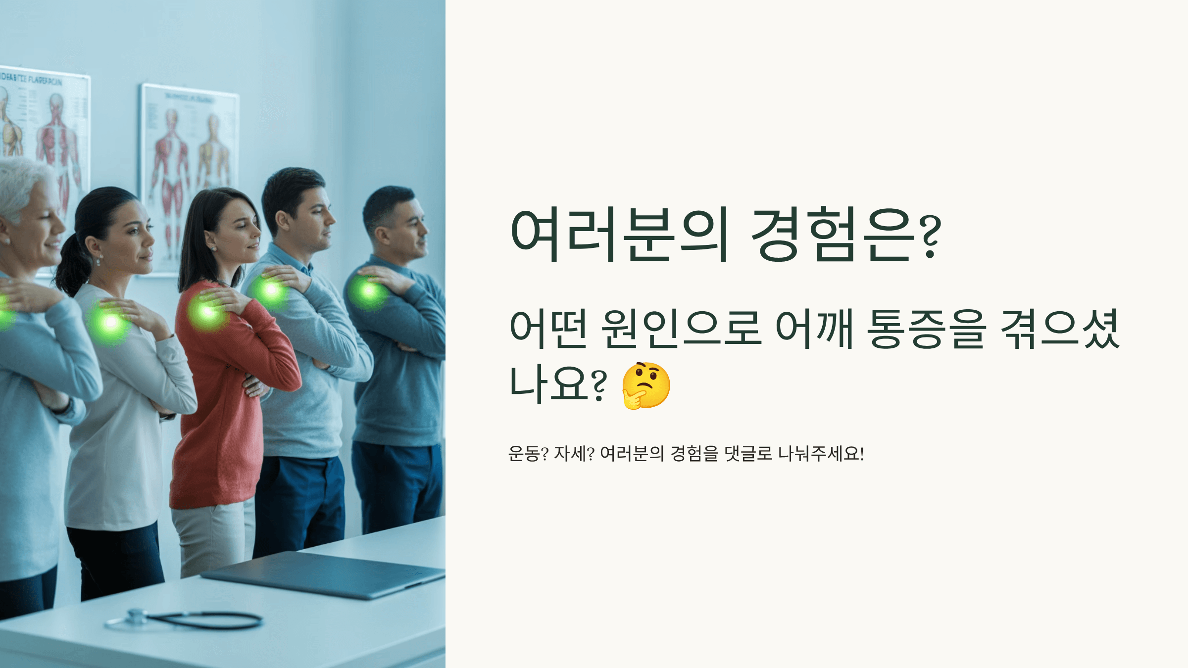 저는 어깨 통증을 겪으면서 "작은 통증도 원인을 알고 대처해야 한다"는 걸 배웠습니다. 앞으로는 어깨 건강을 지키는 생활습관을 꾸준히 실천하려고 해요.
