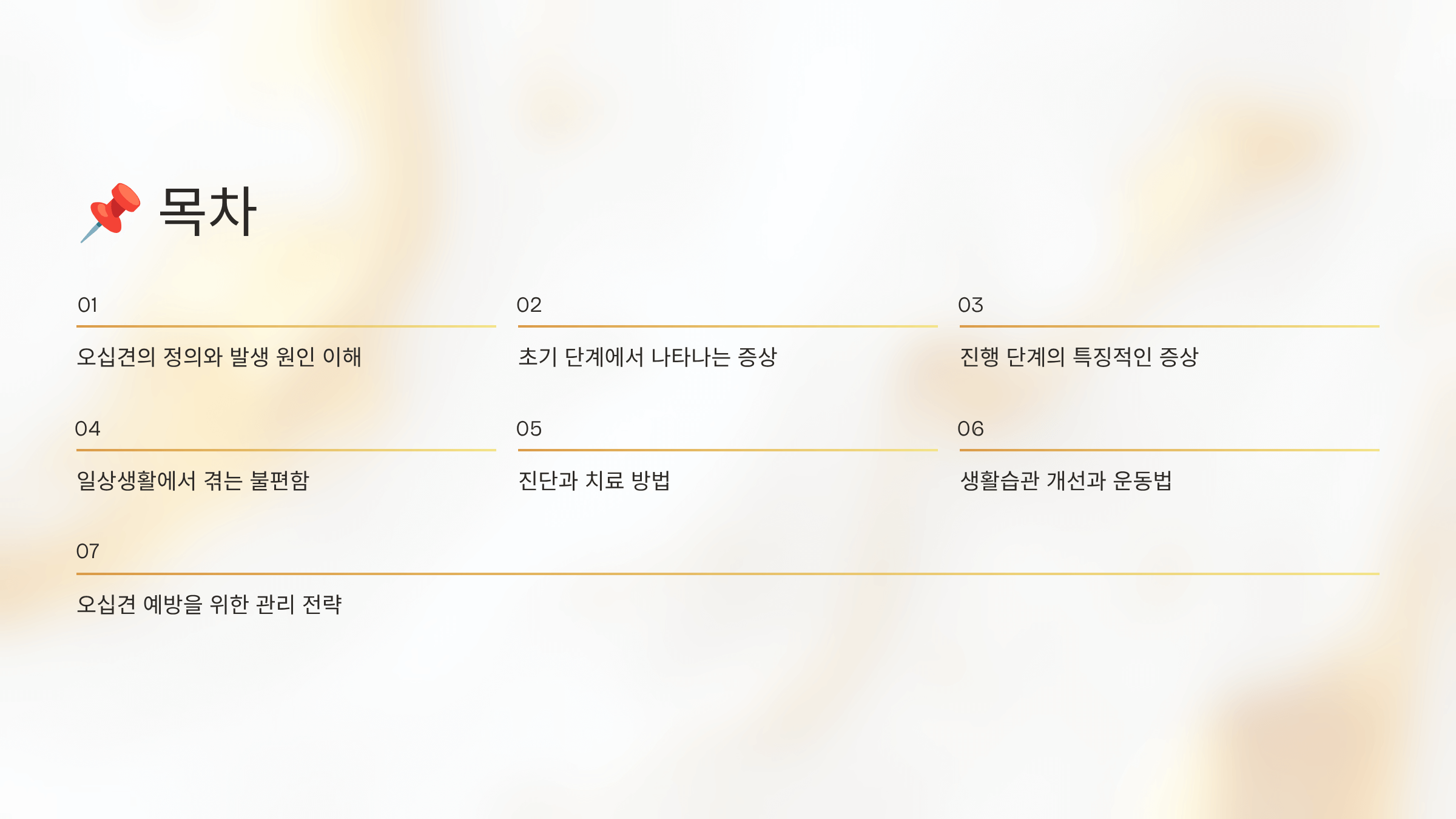 나이가 들면서 어깨 통증으로 고생하는 분들이 많습니다. 그중 대표적인 것이 바로 오십견(동결견)인데요. 저도 한때 어깨가 뻣뻣해져 팔을 제대로 들지 못하는 시기를 겪었는데, 일상생활이 얼마나 불편한지 뼈저리게 느꼈습니다. 이번 글에서는 오십견의 주요 증상과 원인, 그리고 대처 방법까지 알려드릴게요.