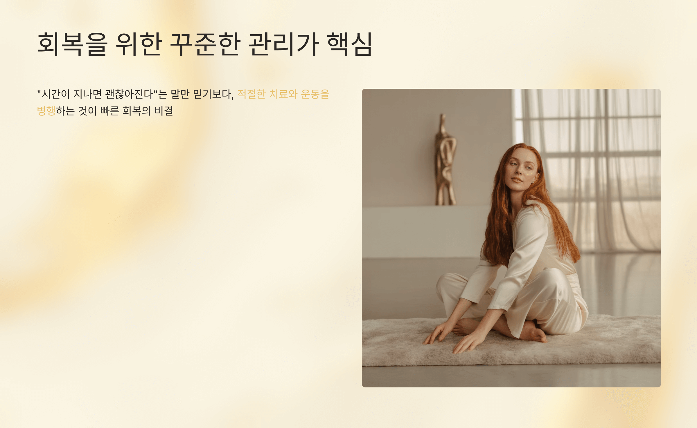 저는 특히 밤마다 찾아오는 통증 때문에 깊은 잠을 못 자 피곤이 쌓였고, 생활 만족도가 크게 떨어졌습니다.