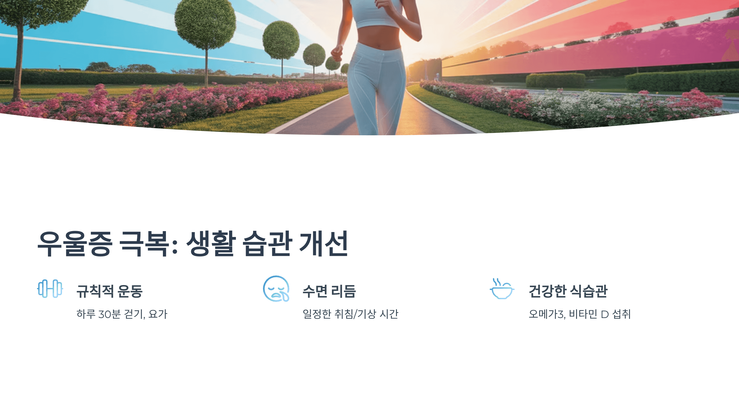 우울증은 혼자 해결하려 애쓰기보다, 내 마음 상태를 인정하고 주변의 도움을 요청하는 것이 시작입니다. 생활 습관 관리, 긍정적 사고 훈련, 전문가 상담을 통해 조금씩 내 일상을 되찾아가는 것이 중요합니다. 혼자가 아님을 기억하세요.