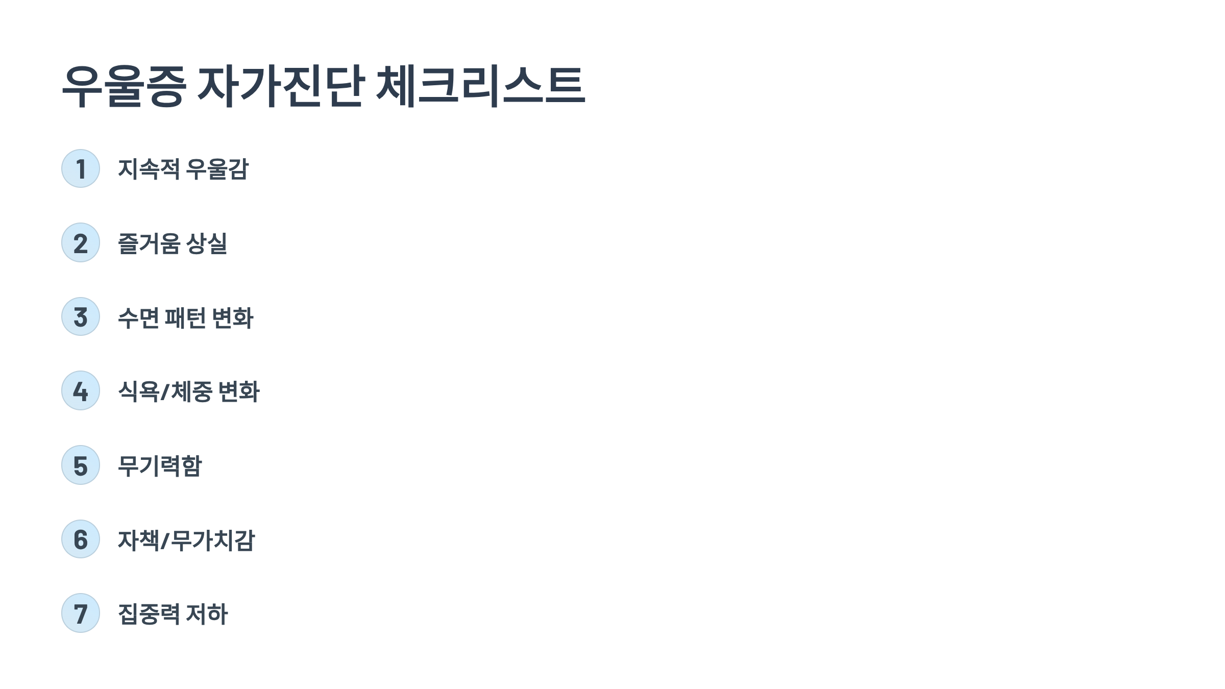 우울증은 단순한 기분 저하가 아니라 일상생활과 신체 건강에 큰 영향을 줄 수 있는 정신 건강 문제입니다. 누구에게나 찾아올 수 있지만 조기에 인식하고 관리하면 극복할 수 있습니다. 이번 글에서는 자가진단 체크리스트부터 극복 방법까지 현실적으로 정리해 드릴게요.