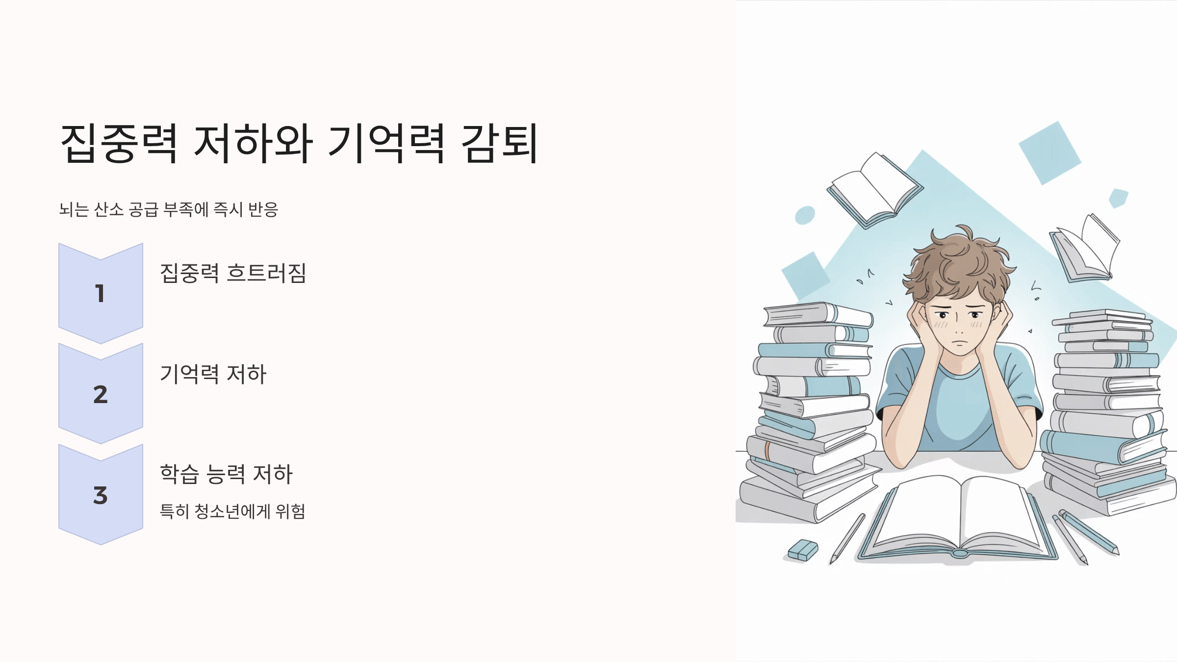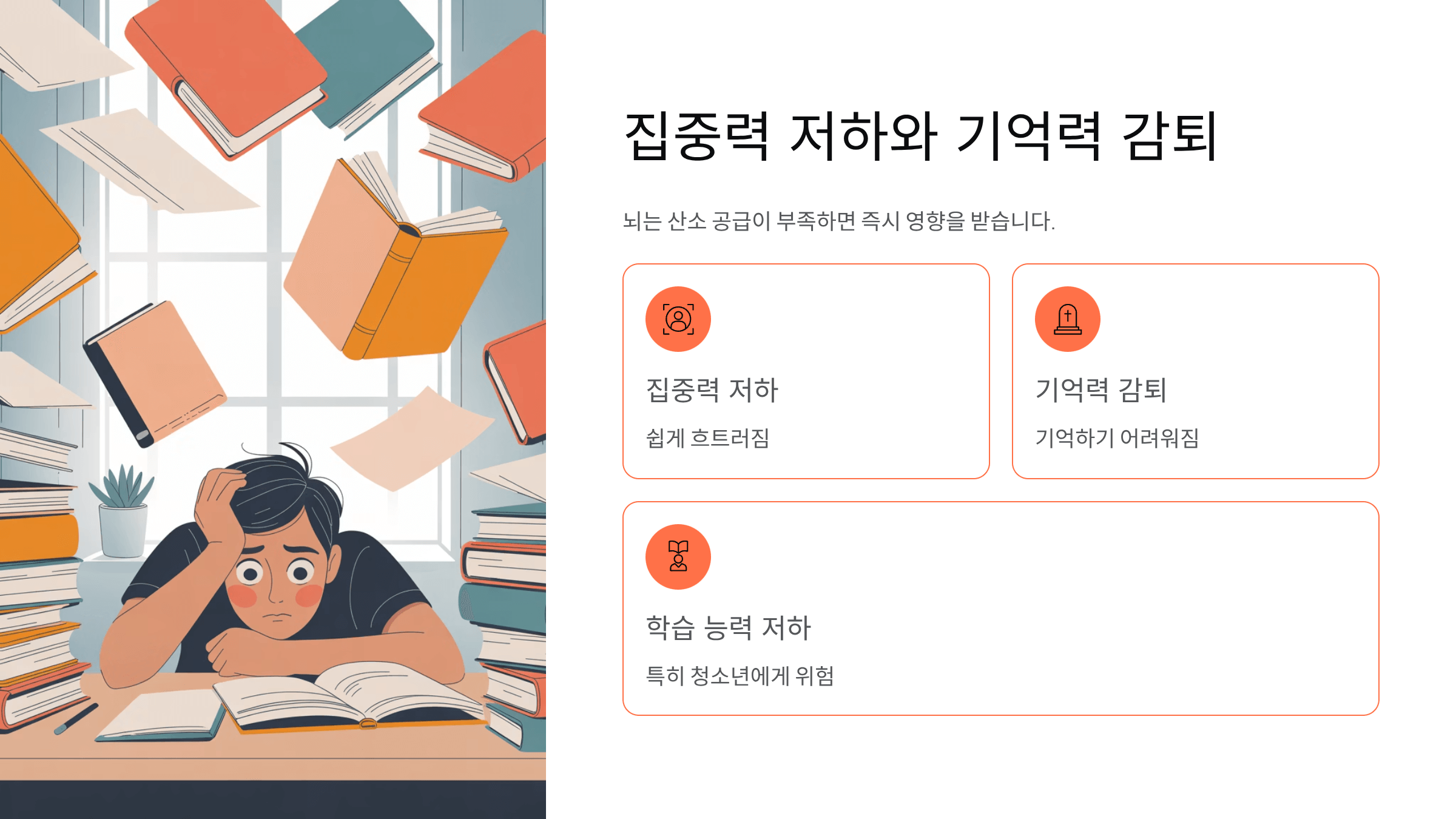 뇌는 산소 공급이 부족하면 즉시 영향을 받습니다.