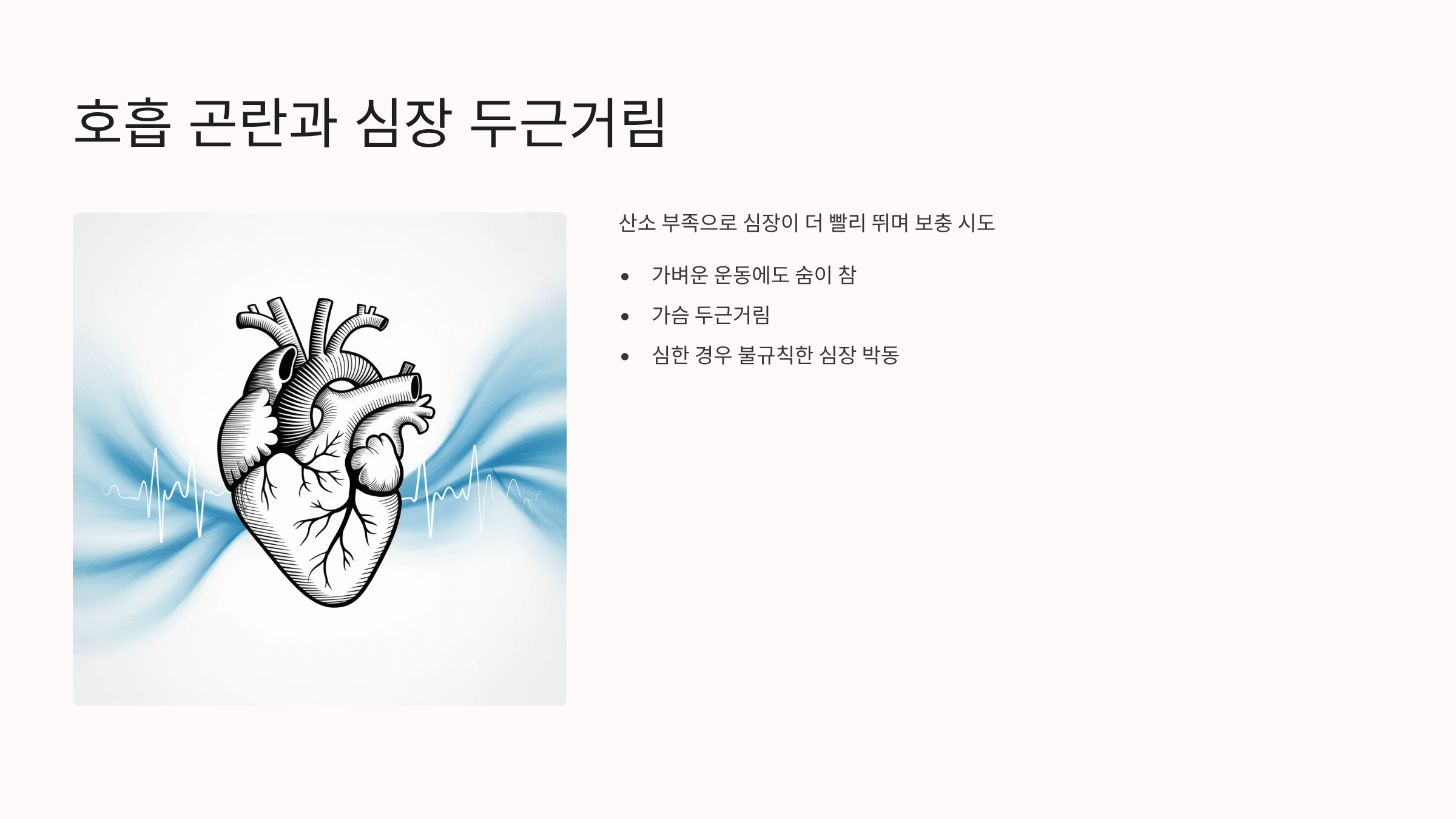 산소가 부족하니 심장이 더 빨리 뛰며 보충하려 합니다.