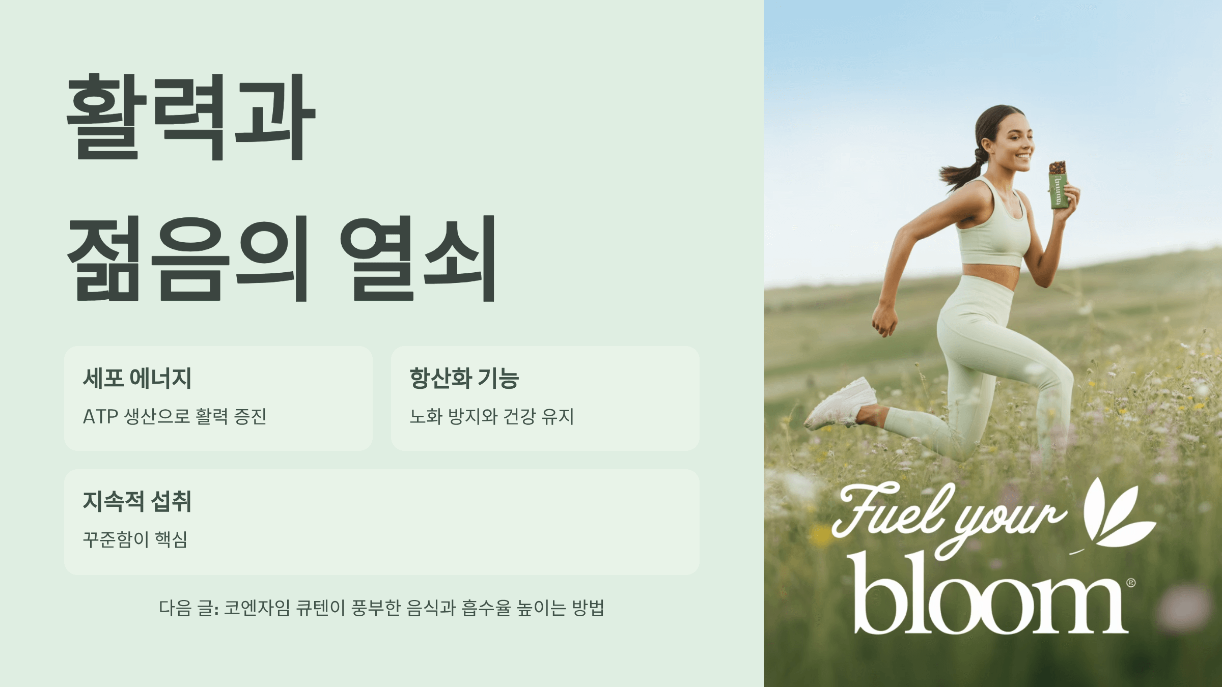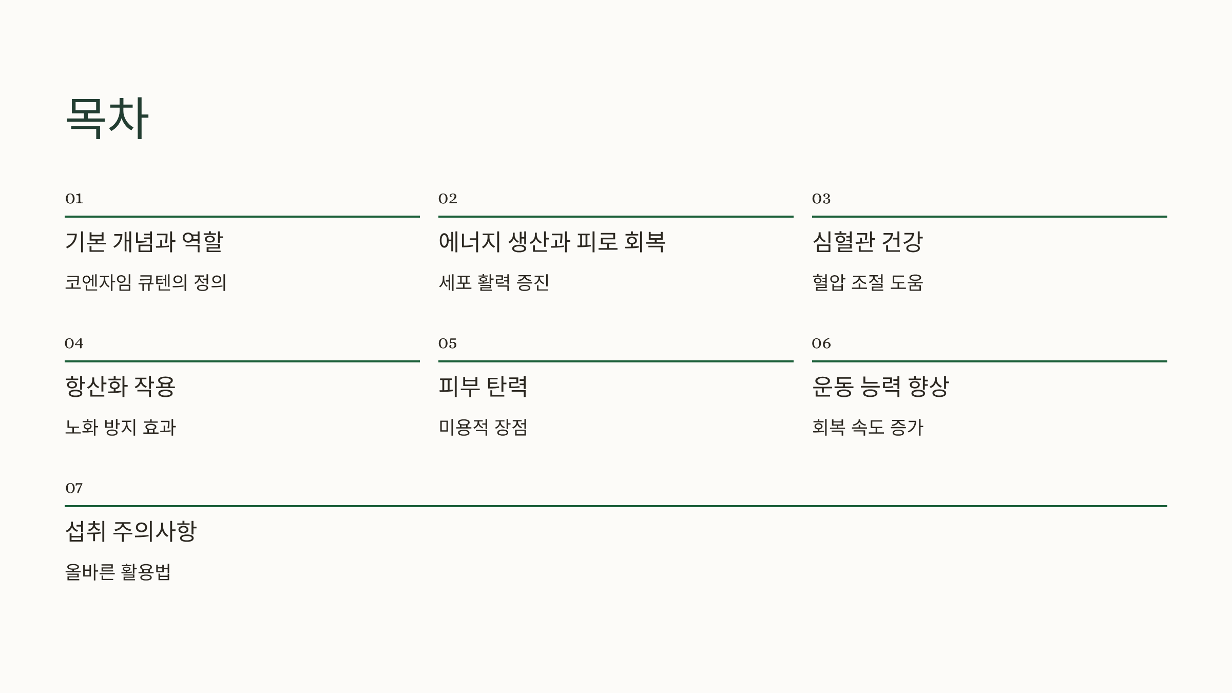🌟 정리하자면, 코엔자임 큐텐은 세포 에너지와 항산화 기능을 동시에 책임지는 활력과 젊음의 열쇠라고 할 수 있습니다. 저 역시 꾸준히 섭취하면서 하루 에너지가 달라졌고, 피부 건강까지 개선되는 걸 느꼈습니다. 다음 글에서는 ‘코엔자임 큐텐이 풍부한 음식과 흡수율 높이는 방법’을 알려드릴게요!