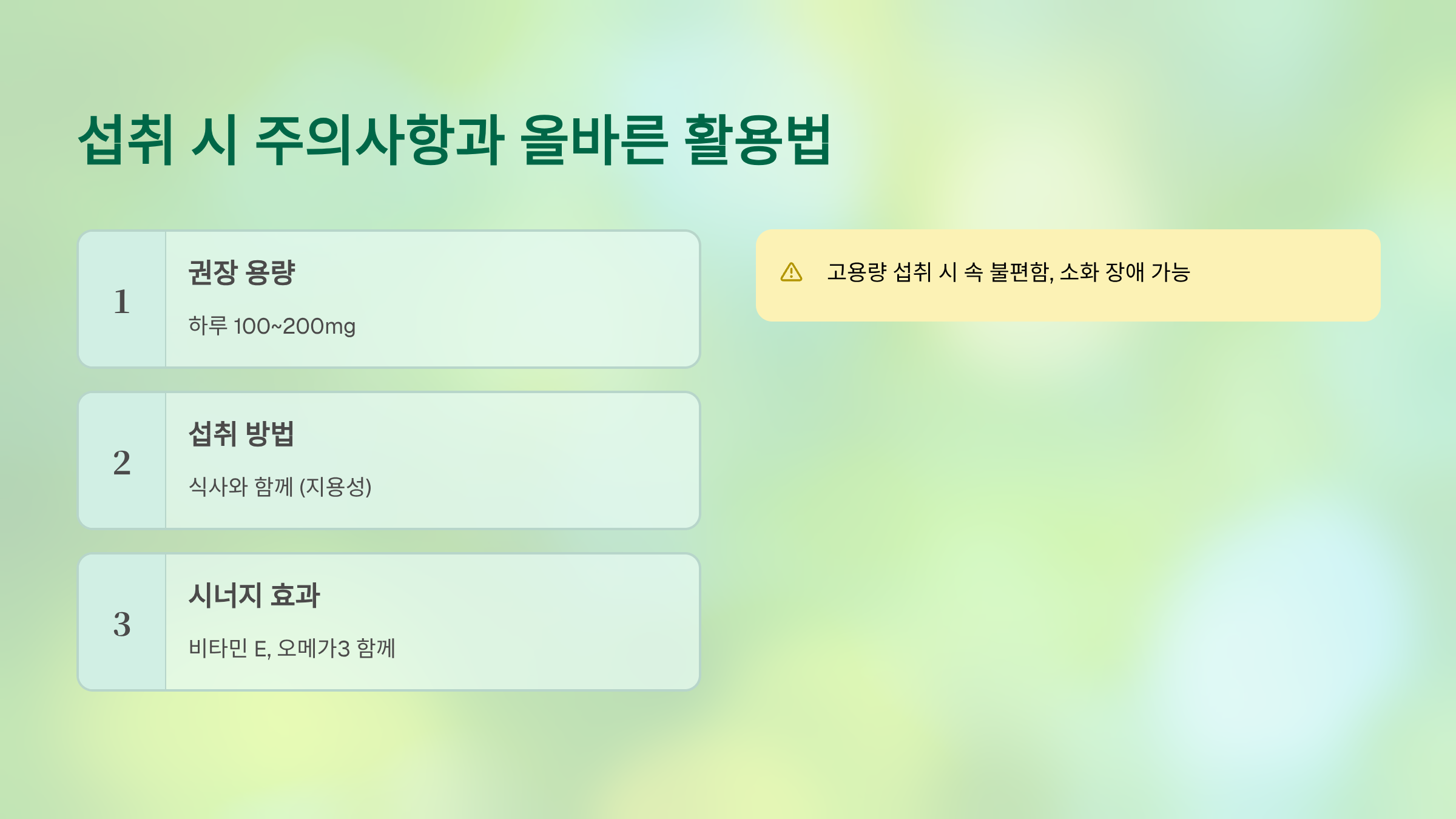 - 하루 100~200mg 권장